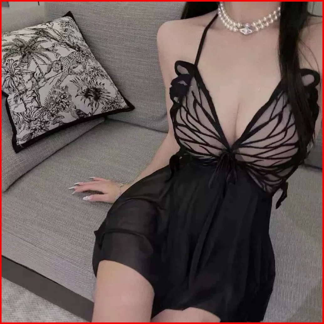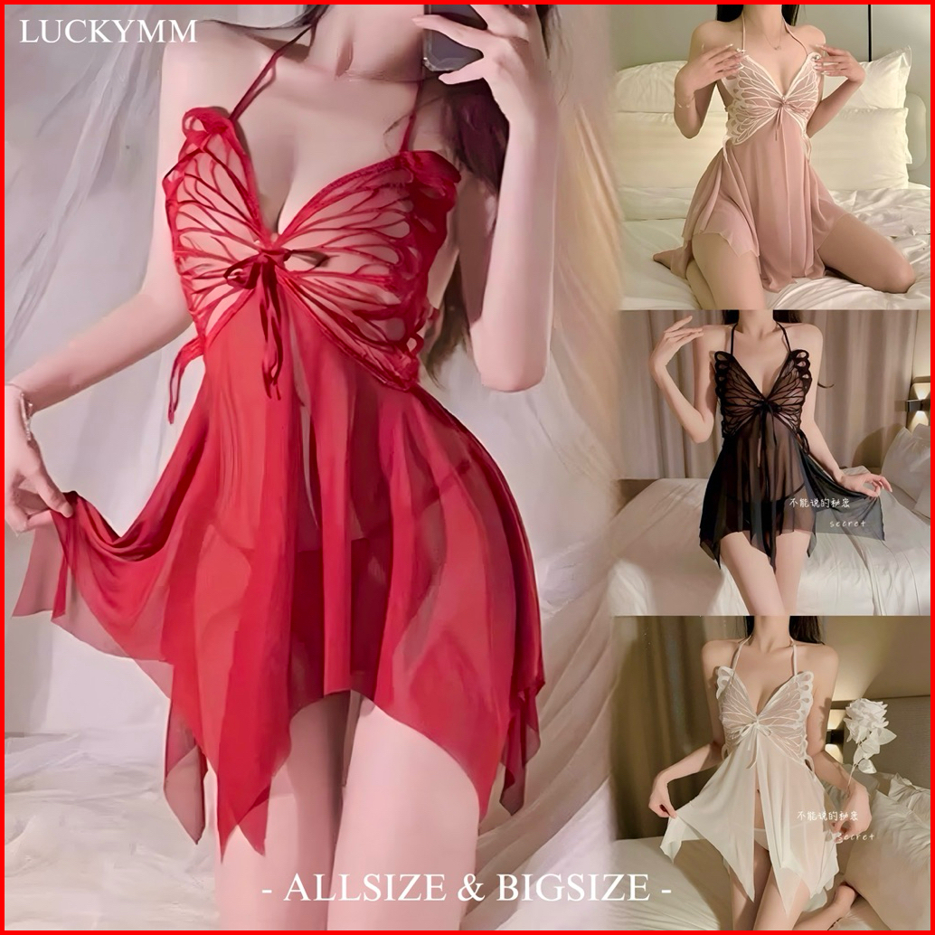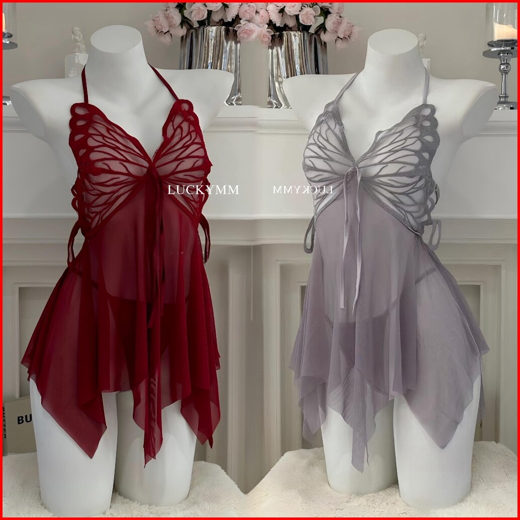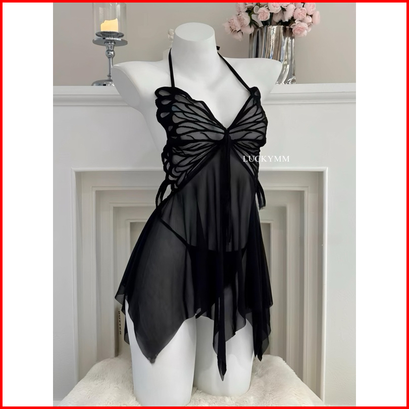 Luckymm Lingerie Dress Sexy Transparan Kupu-kupu Baju Tidur Sexy Lingerie Wanita 30