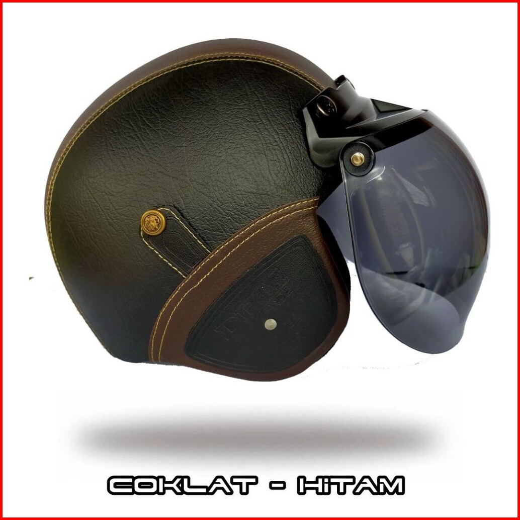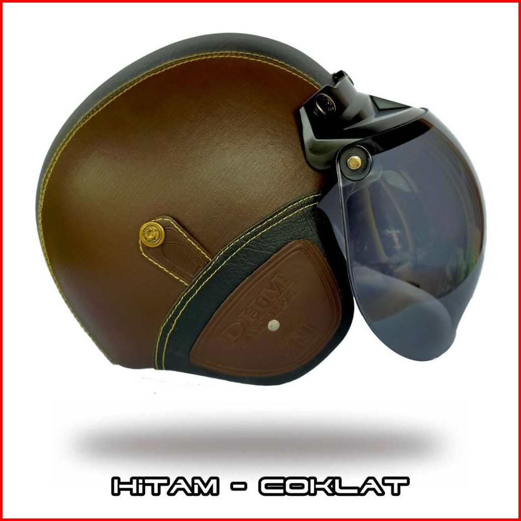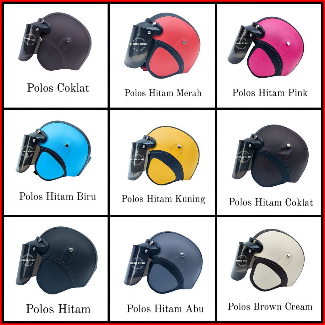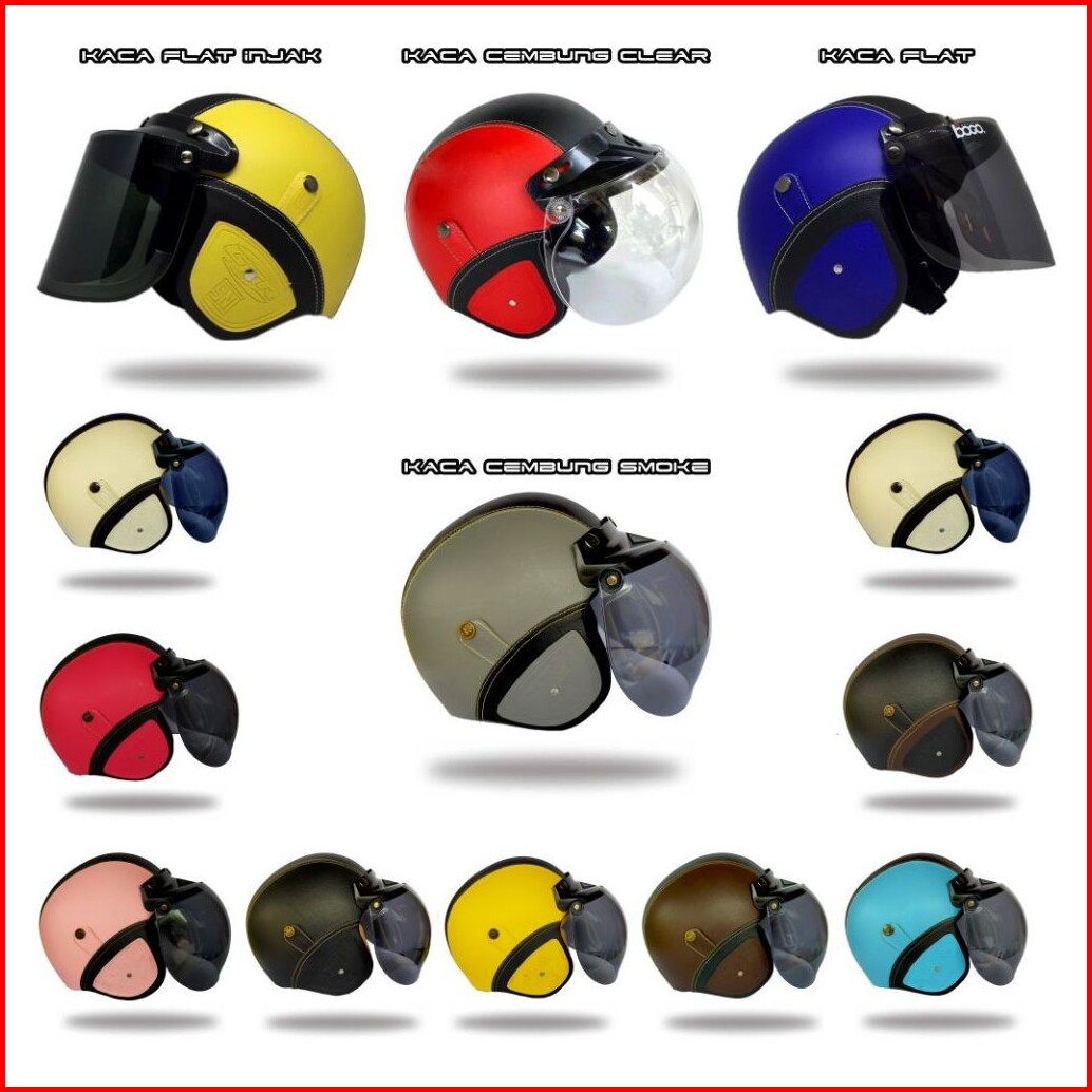 Helm Bogo Standard Retro Dewasa Full Kulit Sni Murah Sudah Termasuk Kaca Free Packing Box
