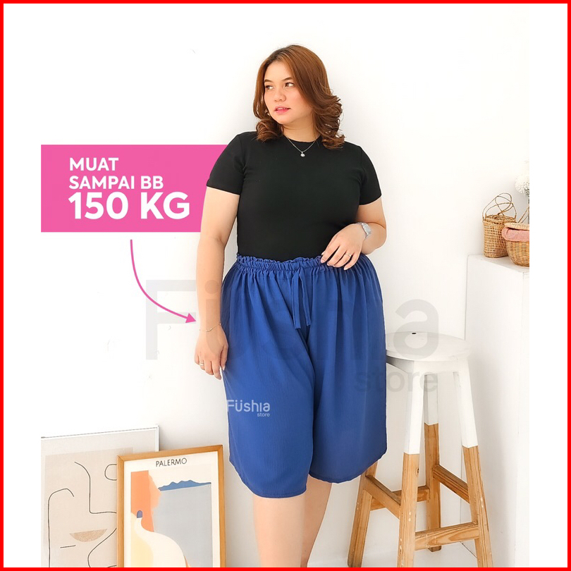 Celana Kulot 7 8 Bb 100 Pendek Wanita Super Jumbo L.p 160cm Crinkle Airflow Xj Dibawah Lutut 3 4