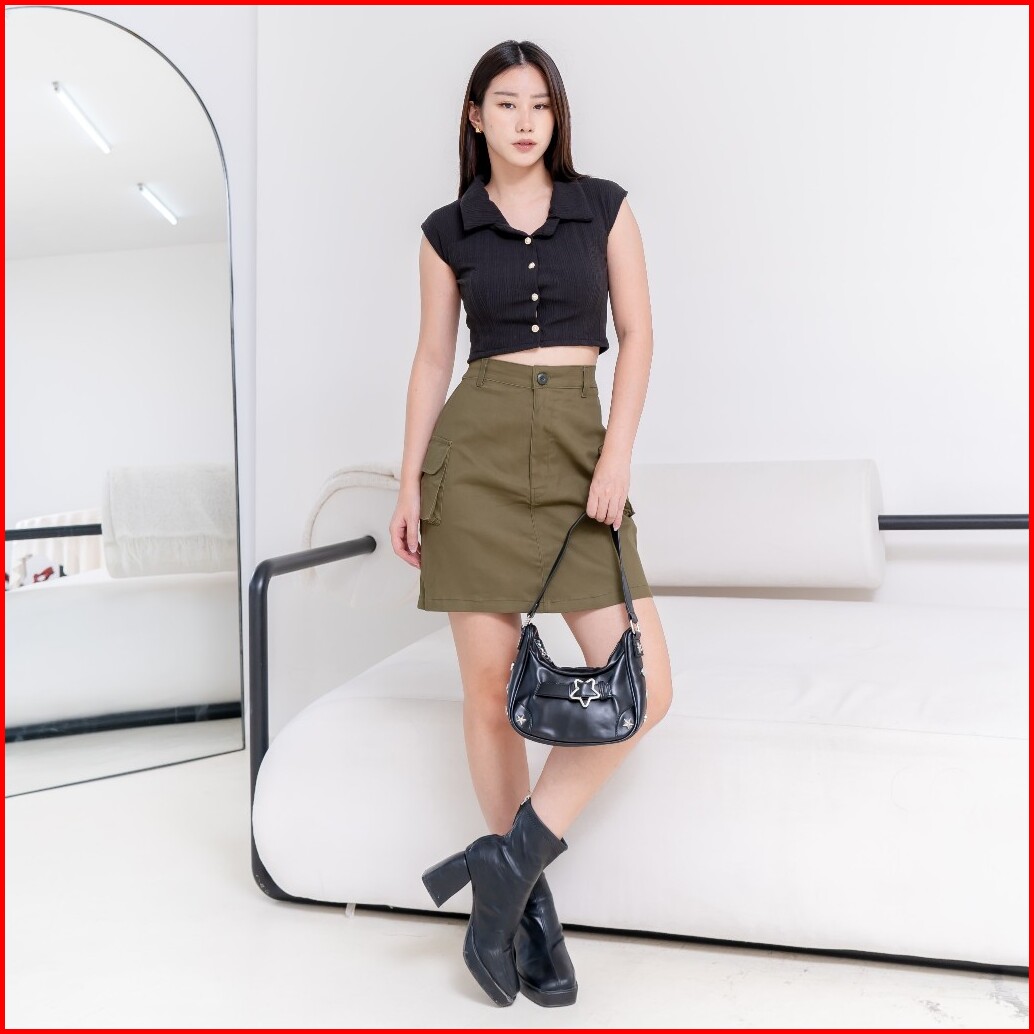Gurlbucket Cargo Skirt Rok Cargo Rok Pendek Cotton Twill Pakaian Wanita