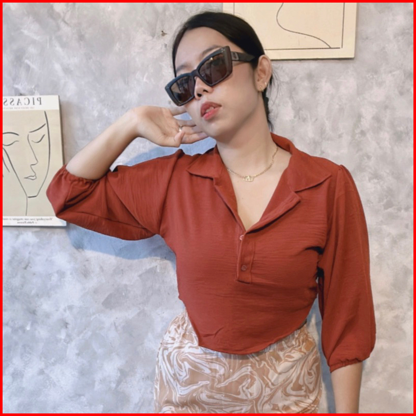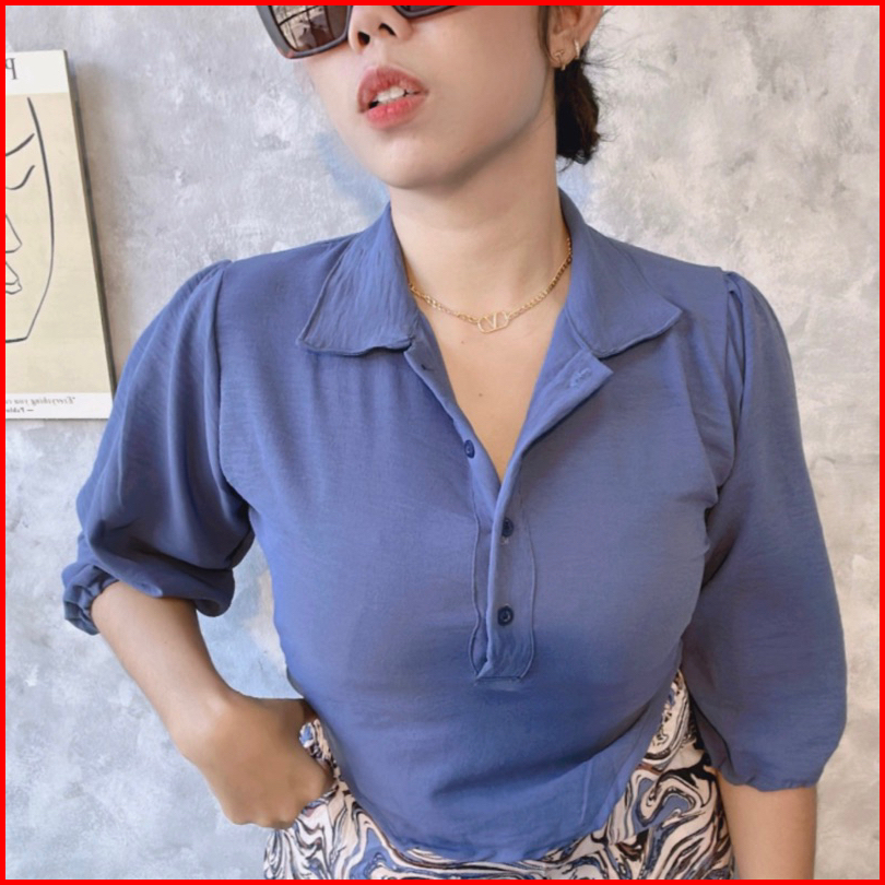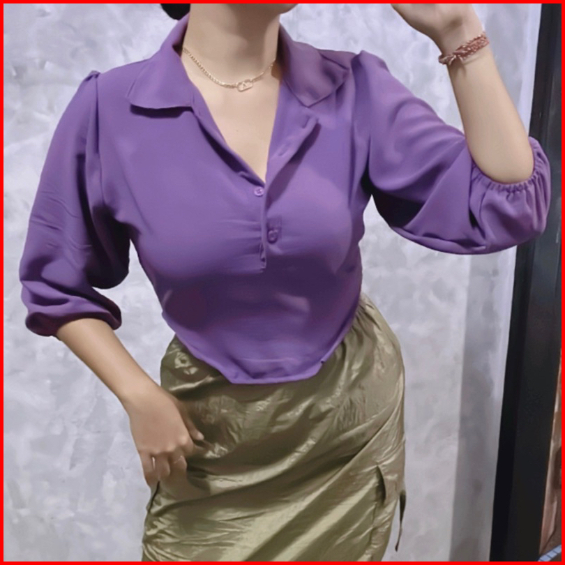 Kemeja Crop Airflow Lady Top Bahan Airflow