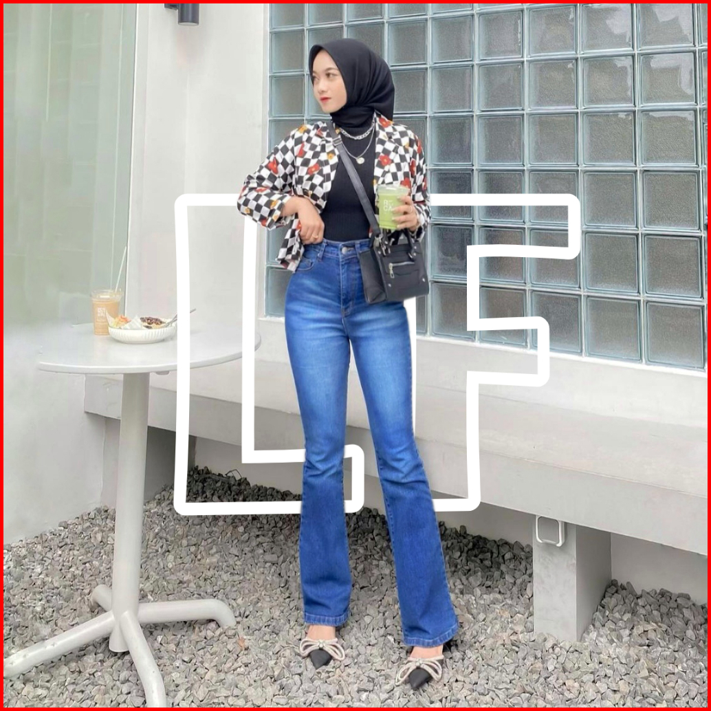 Highwaist Cutbray Jeans 116 Whisker Retro Basic Jeans - Celana Cutbray Jeans Wanita Premium Stretch