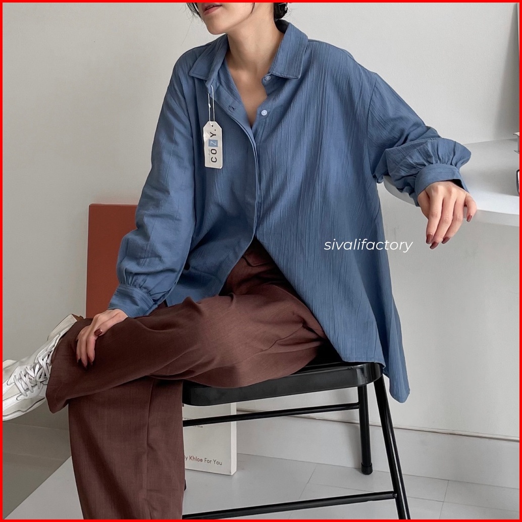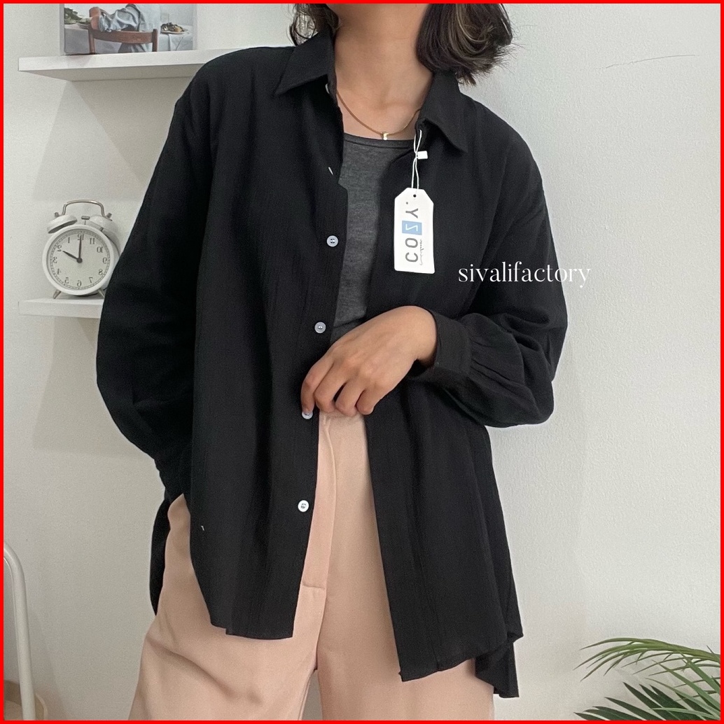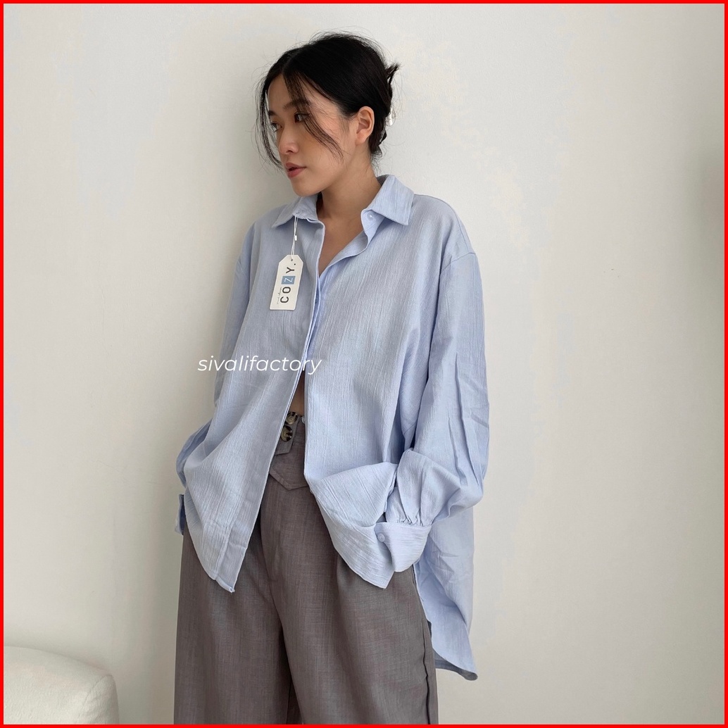 Sivali Loryn Top Kemeja Oversize Linen Wanita - Linen Crinkle Shirt - Atasan Wanita Lengan Panjang 9901