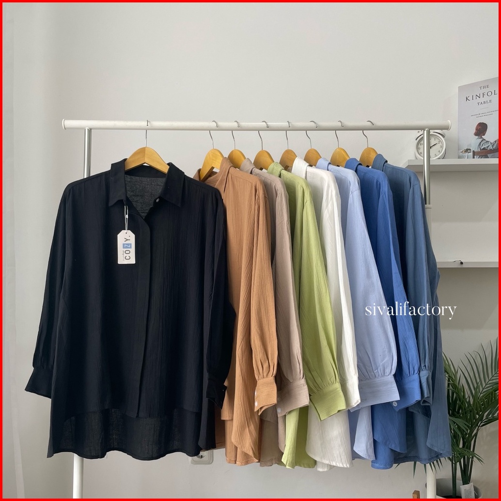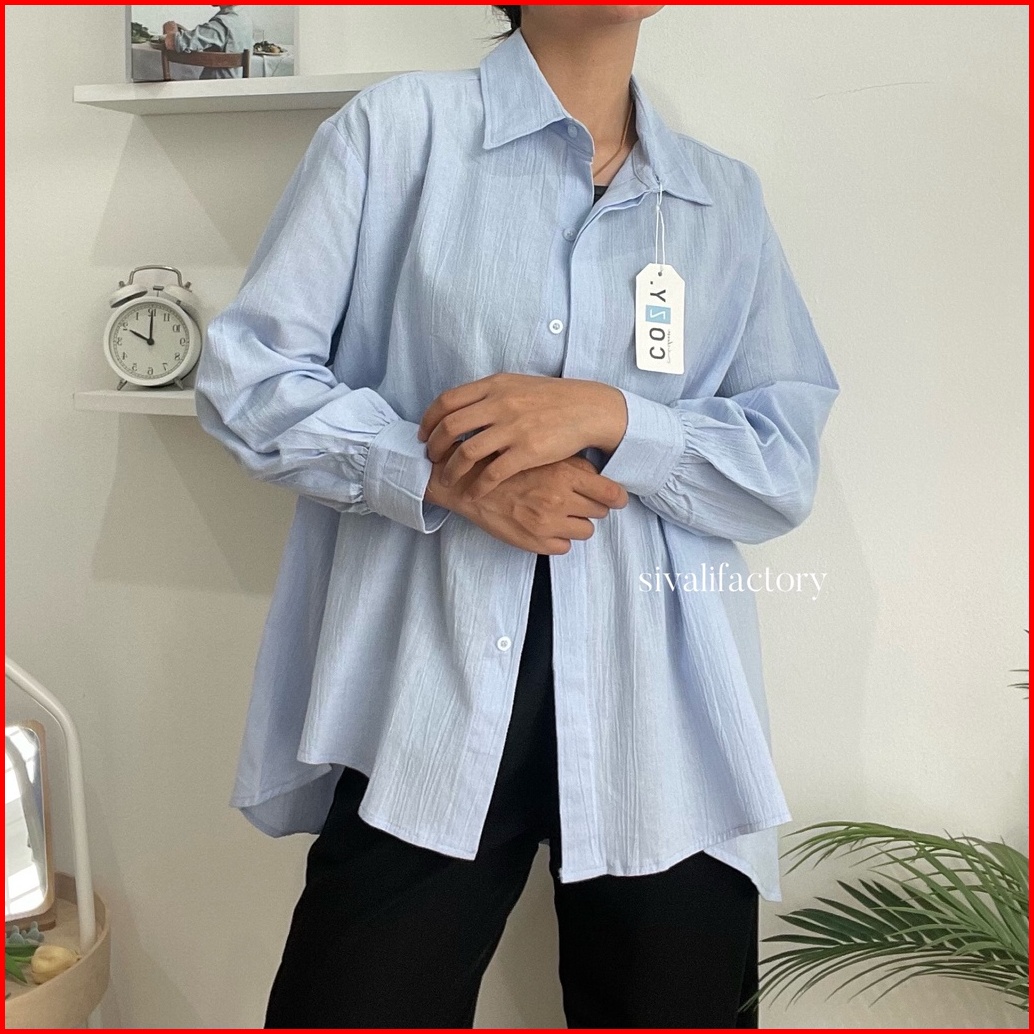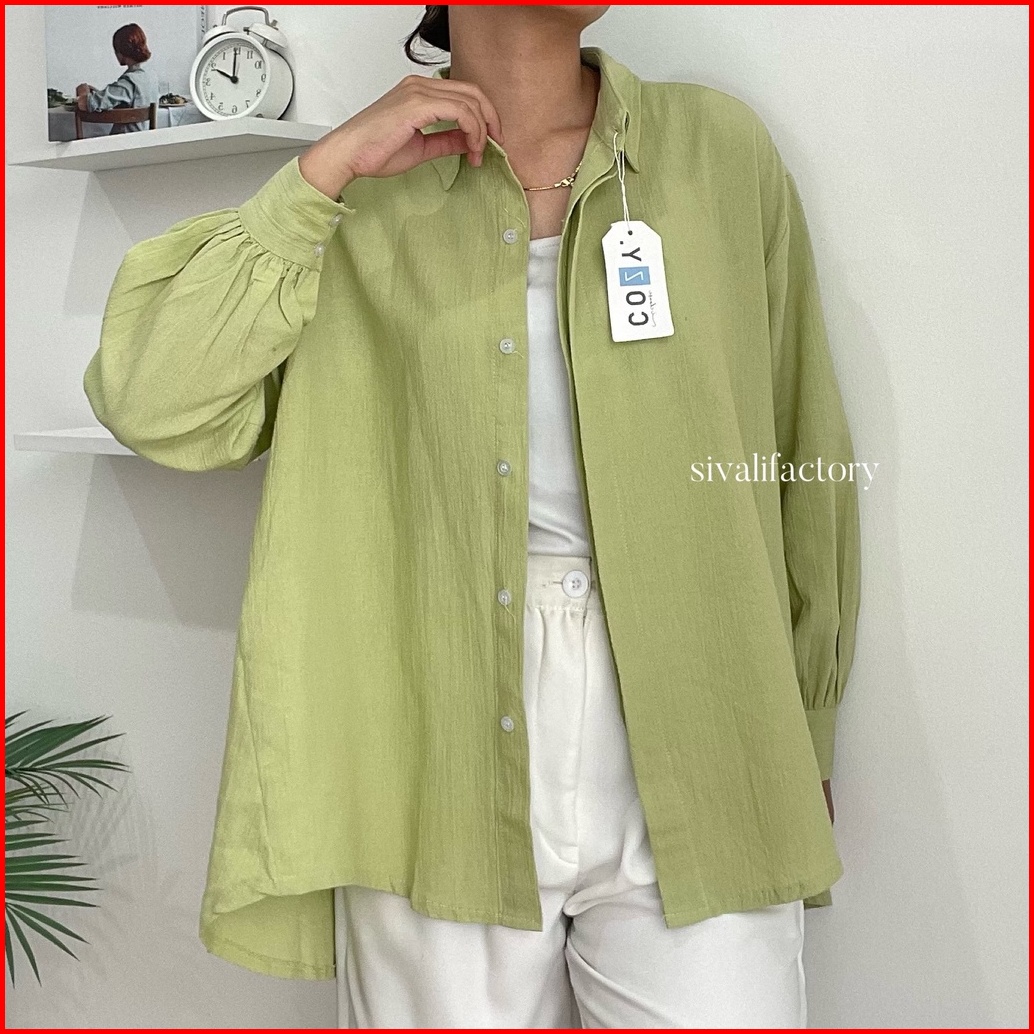 Sivali Loryn Top Kemeja Oversize Linen Wanita - Linen Crinkle Shirt - Atasan Wanita Lengan Panjang 9901