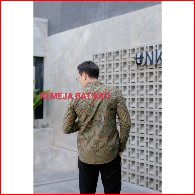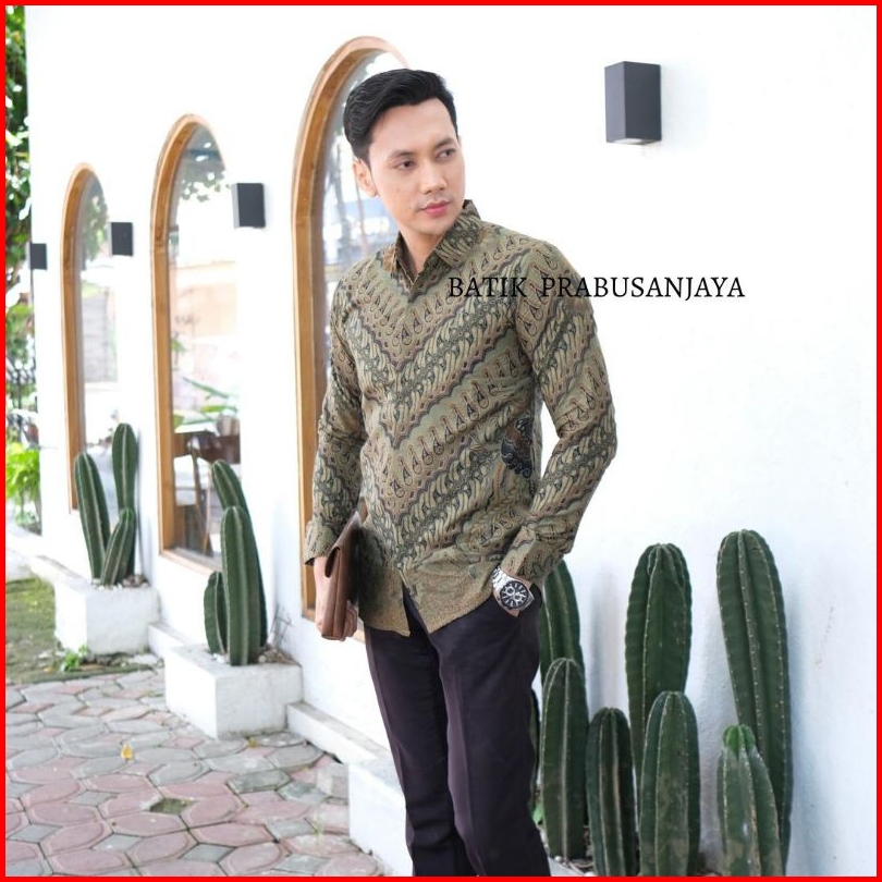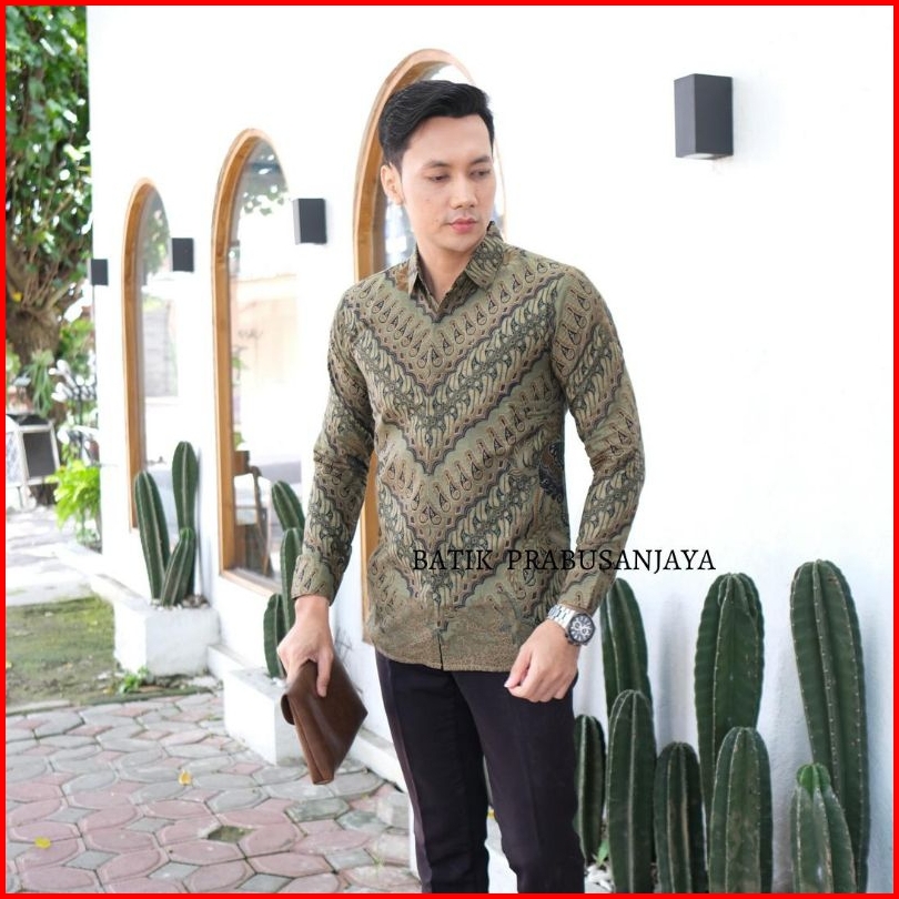 Kemeja Batik Pria Slimfit Premium Motif Parang Seling Sage
