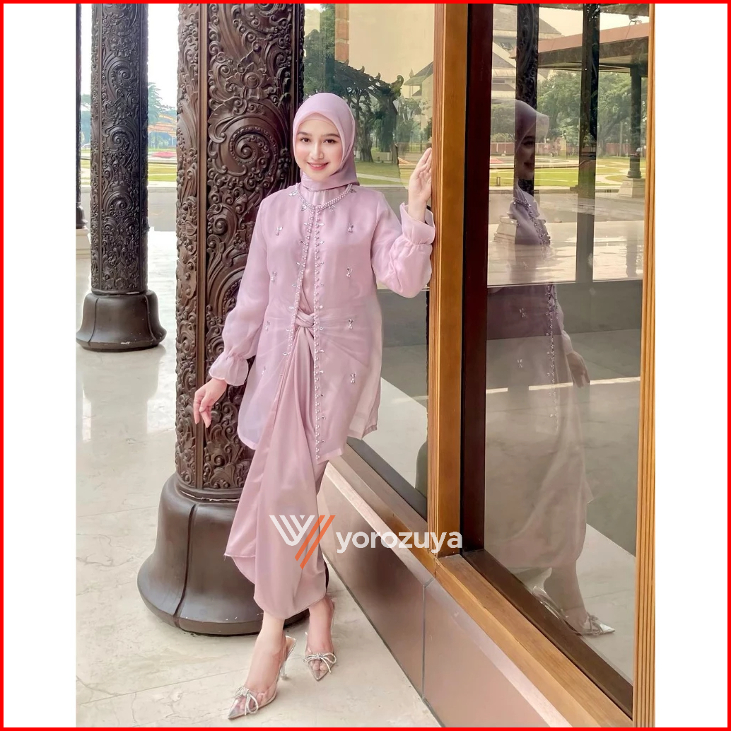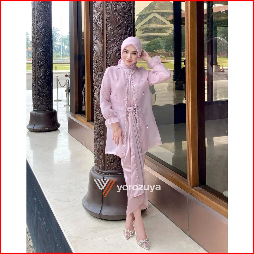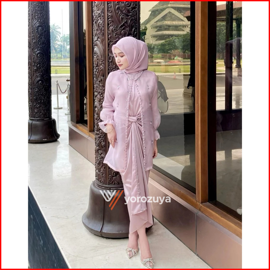 One Set Wanita Kekinian Outer Organza Premium Setelan Kondangan Rok Lilit Outfit Kondangan Kekinian Baju Setelan Wanita