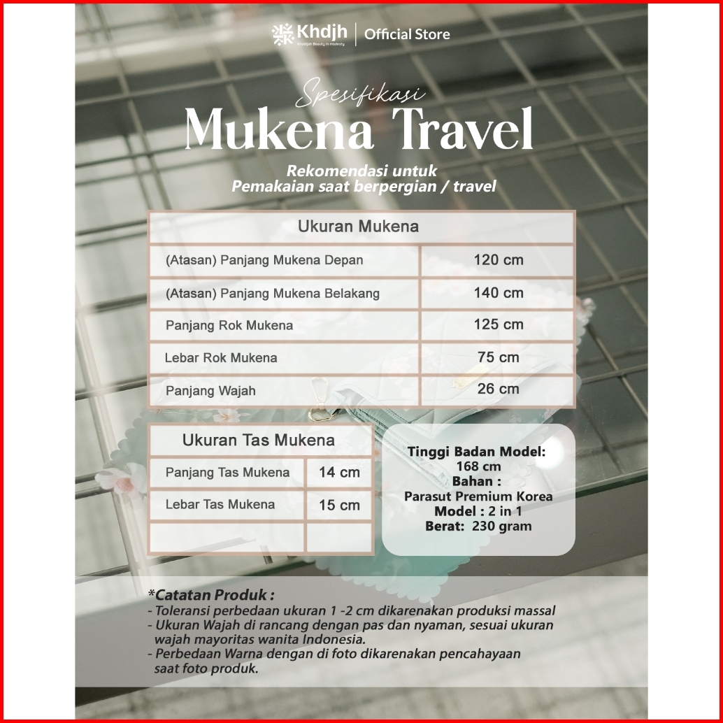 Khadijahlabel Mukena Traveling Parasut Premium Jumbo Motif 2 In 1 Selena