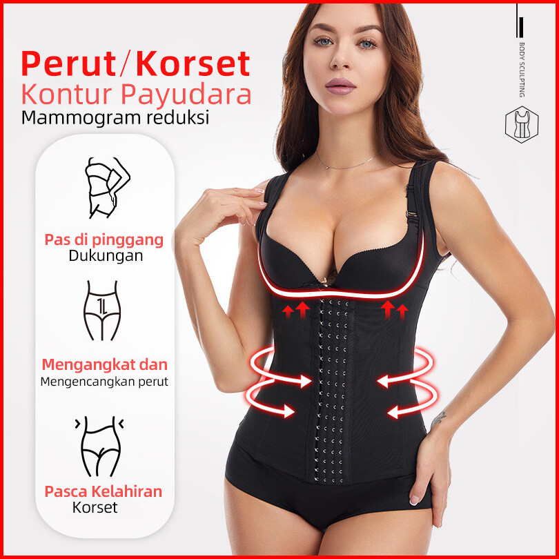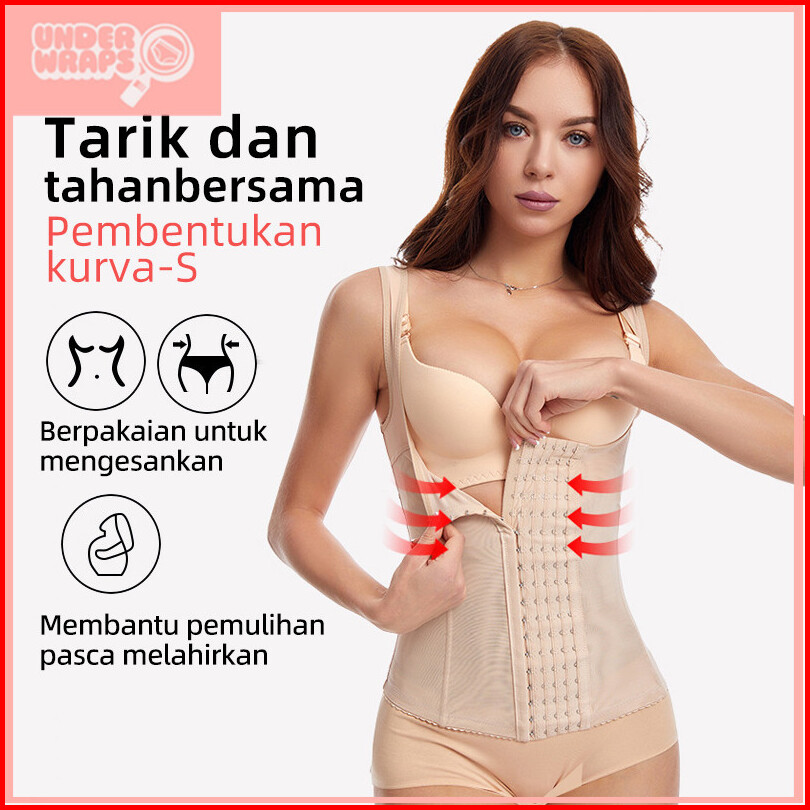 Korset Longtorso Slimming Suit Korset Pelangsing Perut Buncit Korset Pelangsing Melahirkan 6 Pengait 4 Tulang Stagen Sha