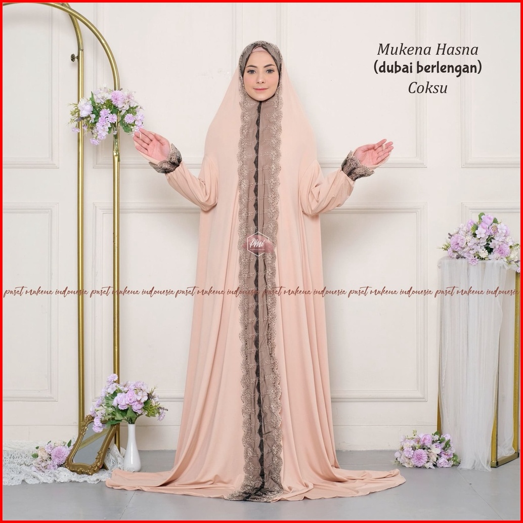 Pusat Mukena Indonesia - Mukena Dewasa Hasna Dubai Berlengan