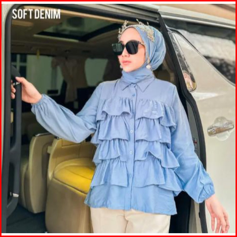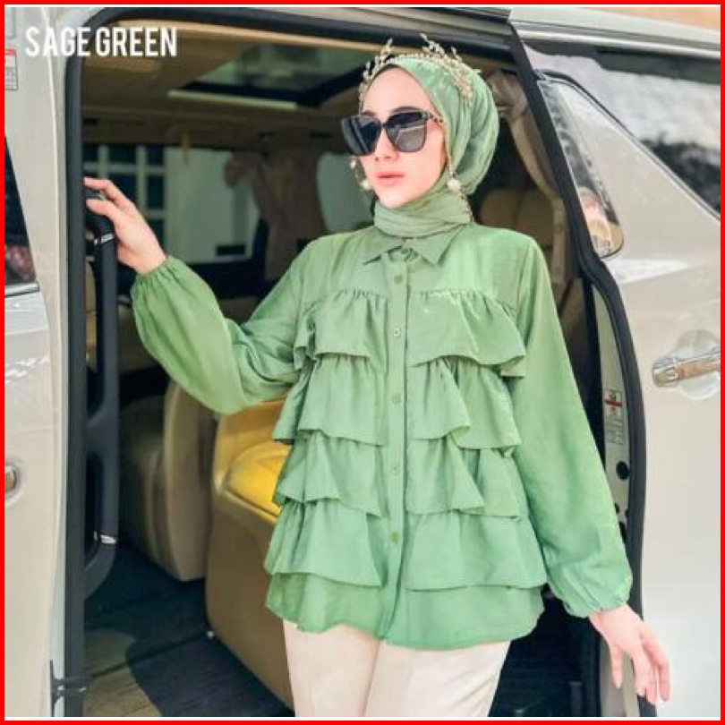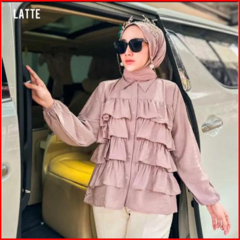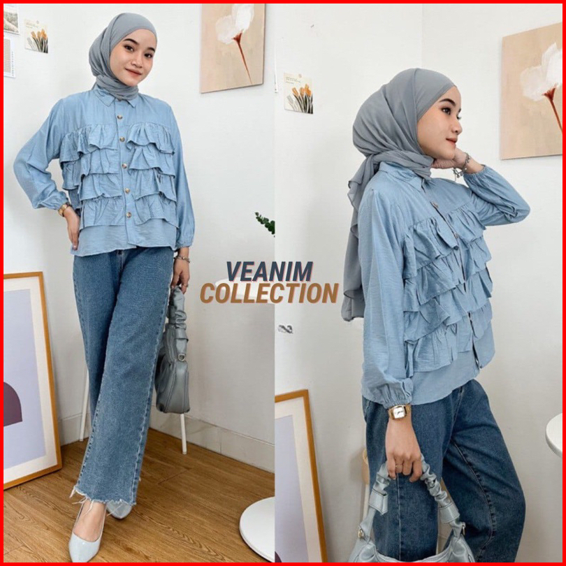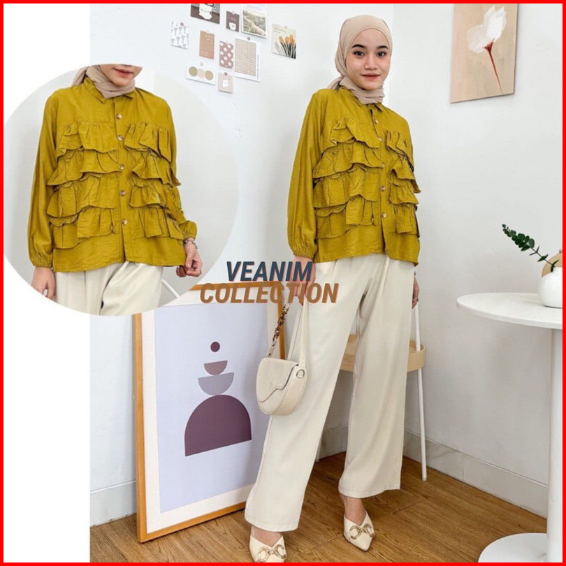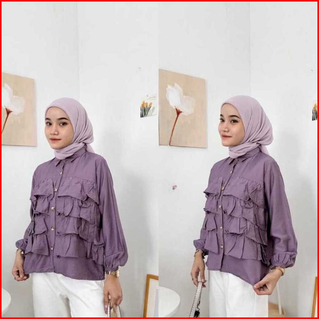 New Arrival Aluna Top Blouse Polo Linen Atasan Kemeja Wanita Rempel Depan Atasan Kemeja Blus Kekinian