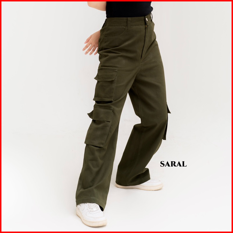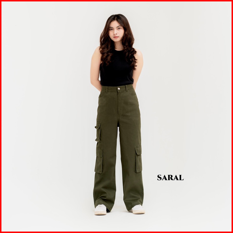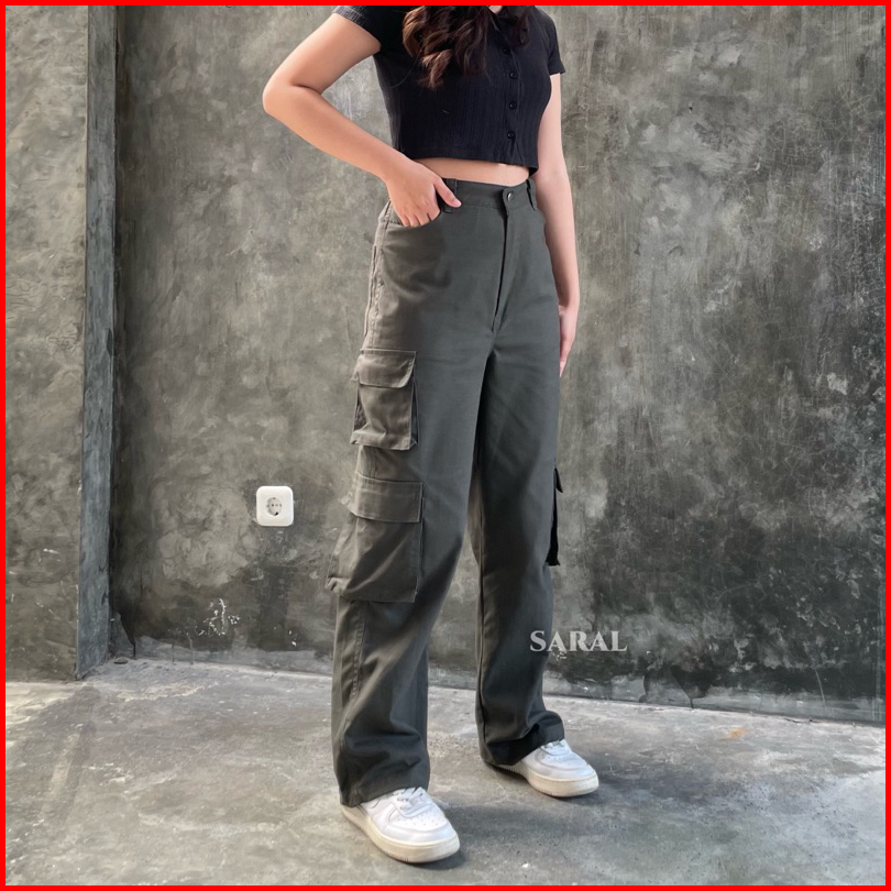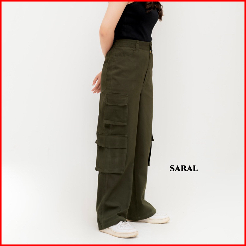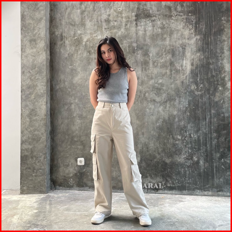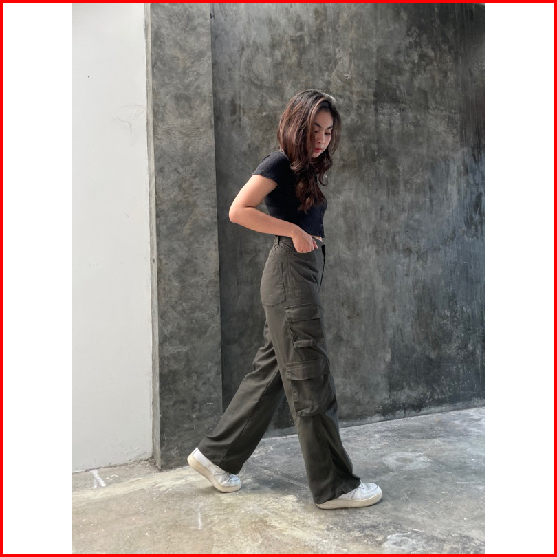 Petra Cargo Pants Twill Highwaist Baggy Loose Wide Leg Pants