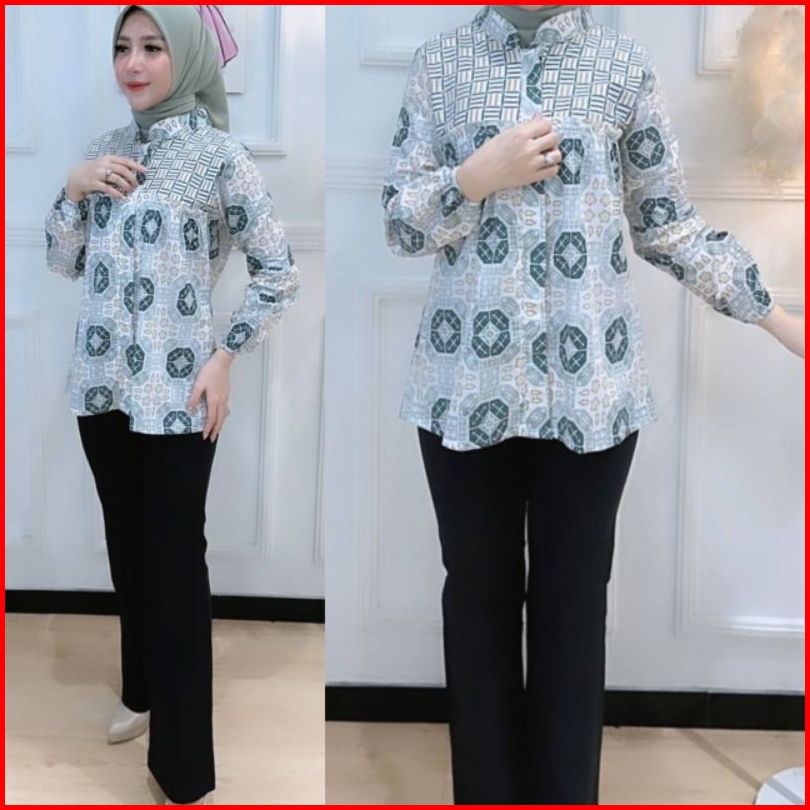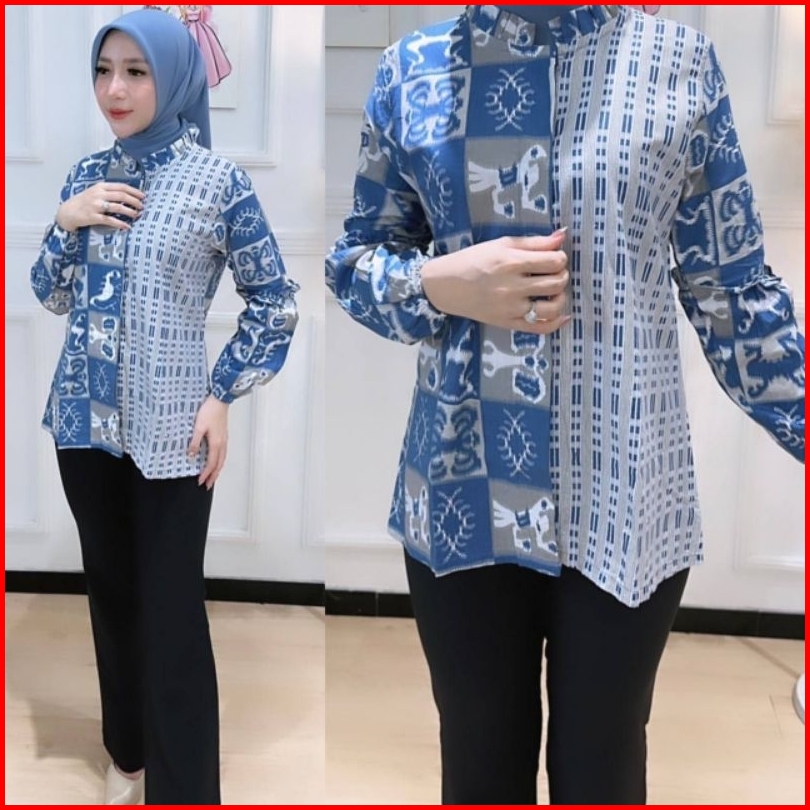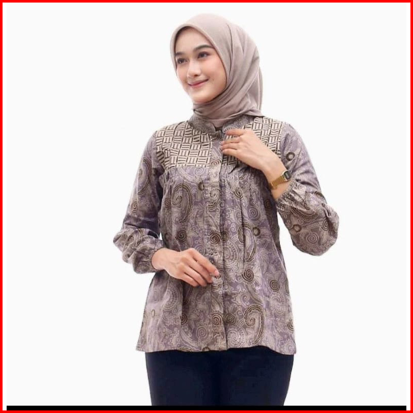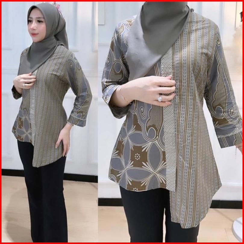 Baju Batik Wanita Modern Atasan Blouse Batik Kerja Kantor Wanita
