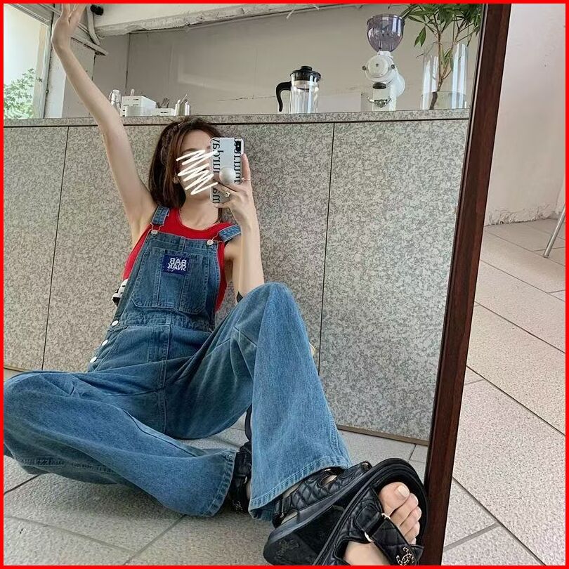 Nana Denim Overall Fashion Wanita Celana Lebar Kaki Celana Longgar 011