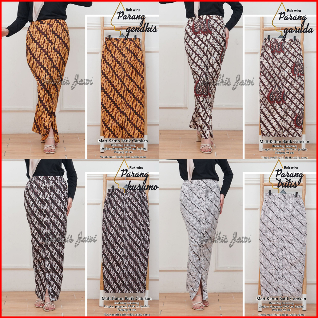 Parang tritis, Parang kusumo, Parang gelik, Parang gendhis, Parang garuda, Parang barong, Shareen, Sidoasih, Cendrawasih, Sidomukti, Truntum warna, Sidoluhur, Pranata gading, Adhikara, Via sogan, Wahyu temurun, Paragaya, Truntum pias, Jelita gading, Jelita sogan, Parang ayu, Sidoarum, Parang garuda alit, Truntum garuda, Shareen sogan, Parang nadya, Parang remuk, Truntum pias coklat