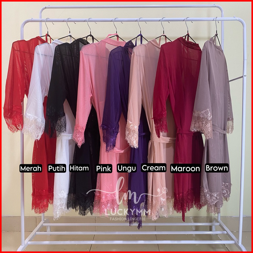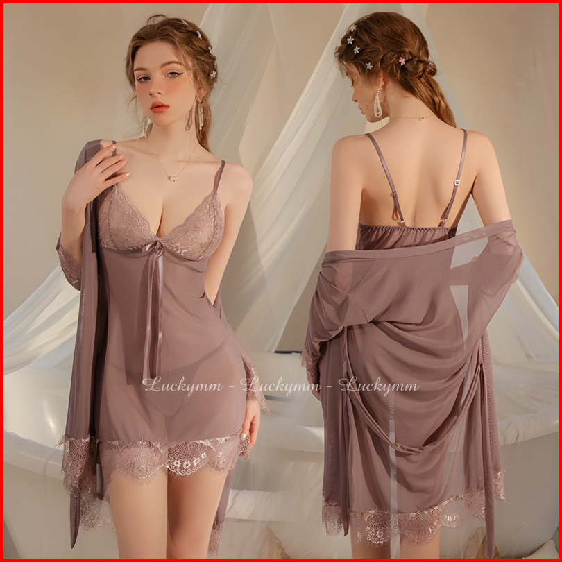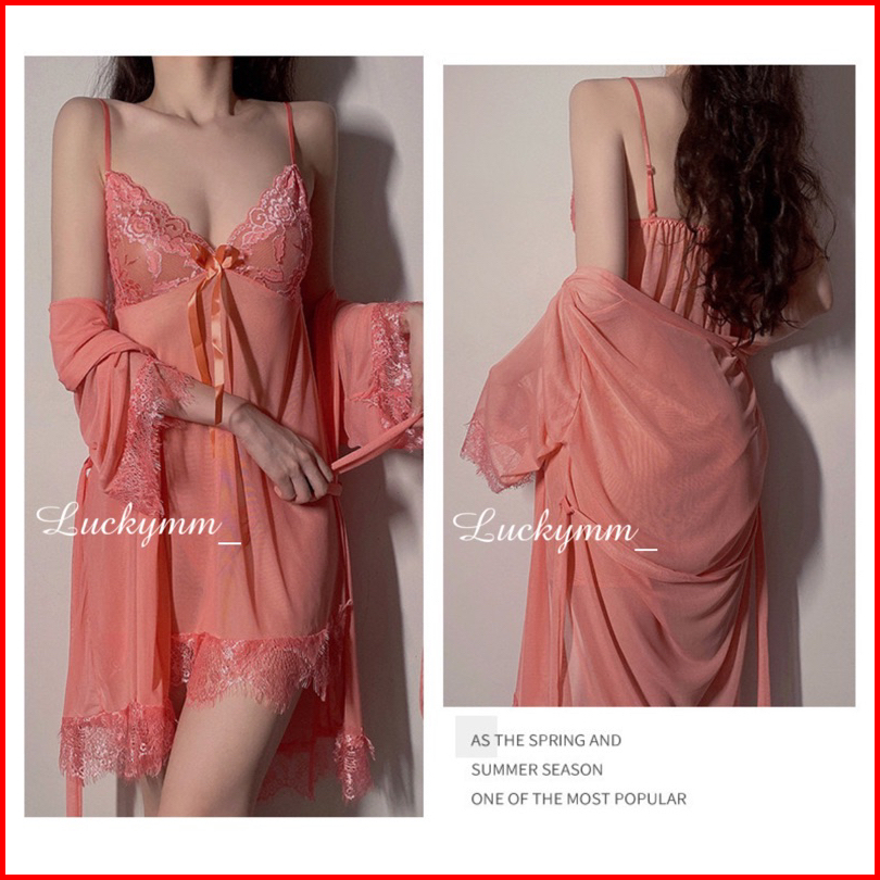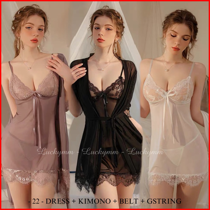 Satu Set Sexy Lingerie Kimono Transparan Baju Tidur Sexy Wanita Sleepwear Wanita 022