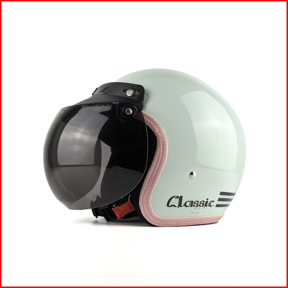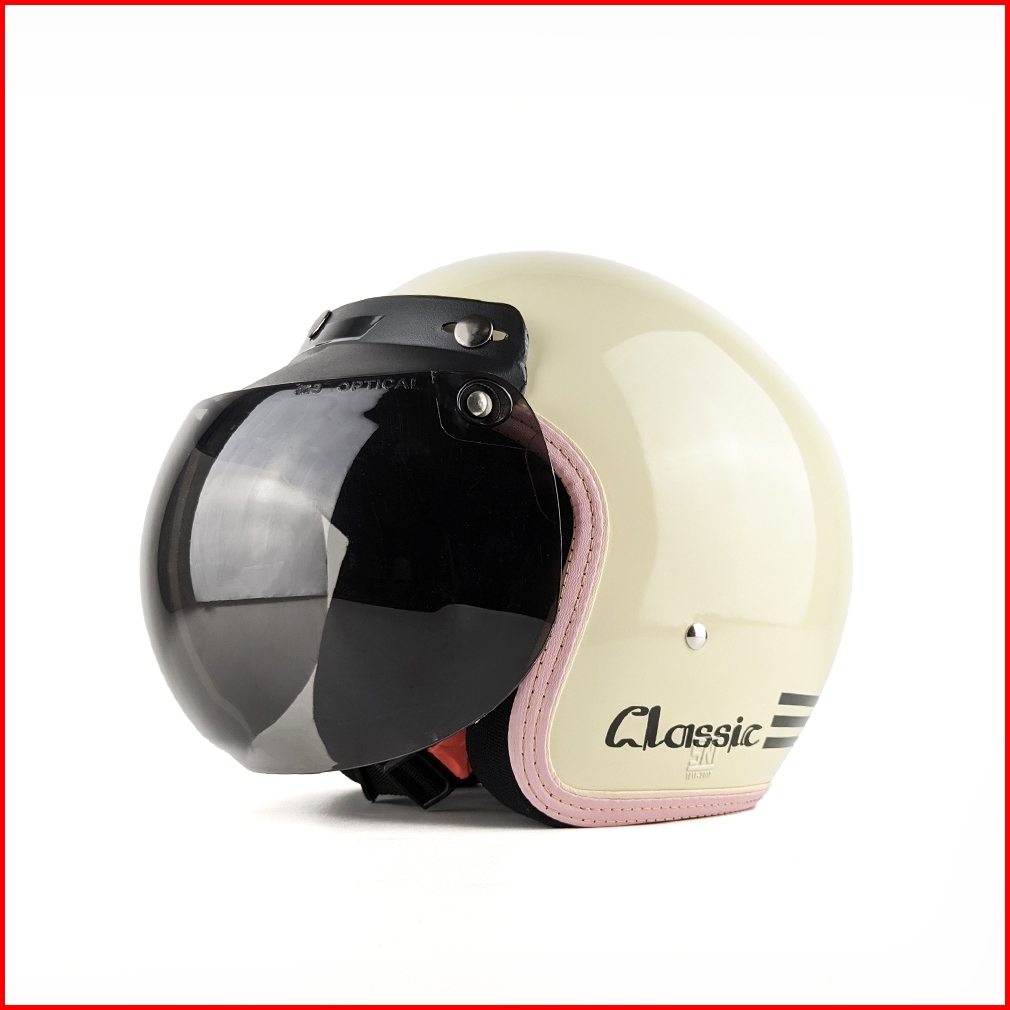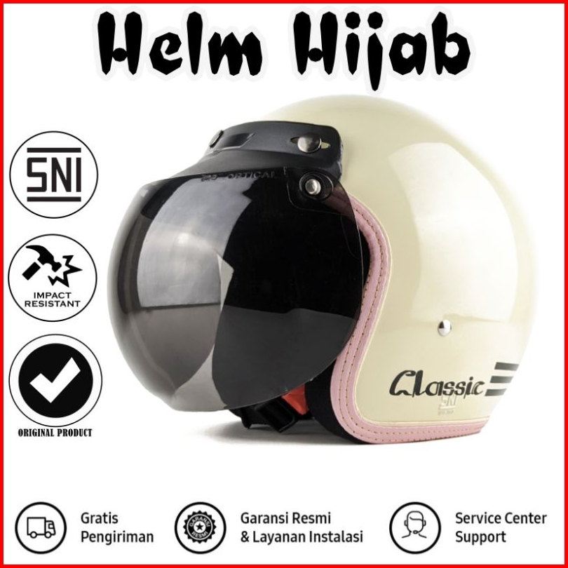 Helm Bogo Wanita Dewasa Hijab Classic Lis Kulit Pink Original Sni Free Kaca Datar Cembung