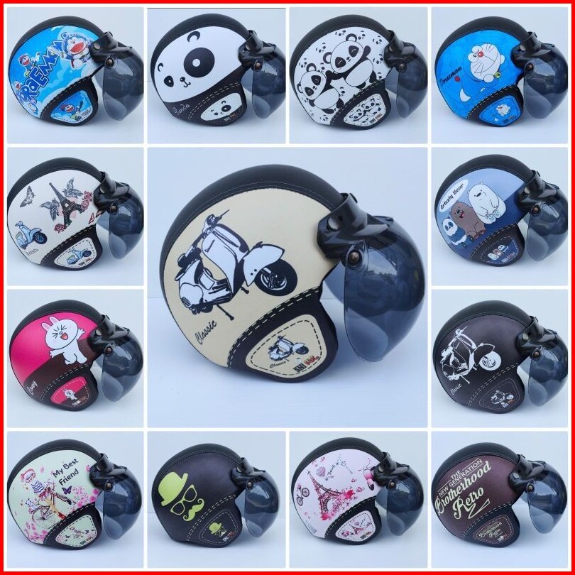 1.Doraemon terbang, 2.Mata panda, 3.panda twin, 4.Doraemon tidur, 5.Grizily bear, 6.Vepsa hitam, 7.Brotherhood, 8.Paris pink, 9.kumis kuning, 10.my best firend, 12.vespa burung, 13.Vespa krem, 11.cony, Paris coklat, Sepeda kupu pink, Polos hitam, Coklat hitam, Polos cream, Kuning hitam, Merah hitam, Pink hitam, Abu hitam, Biru hitam, Kaca cembung hitam, Aestetic