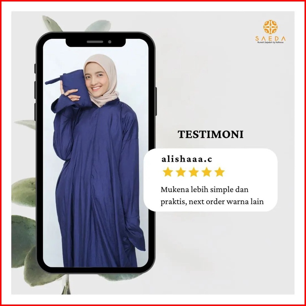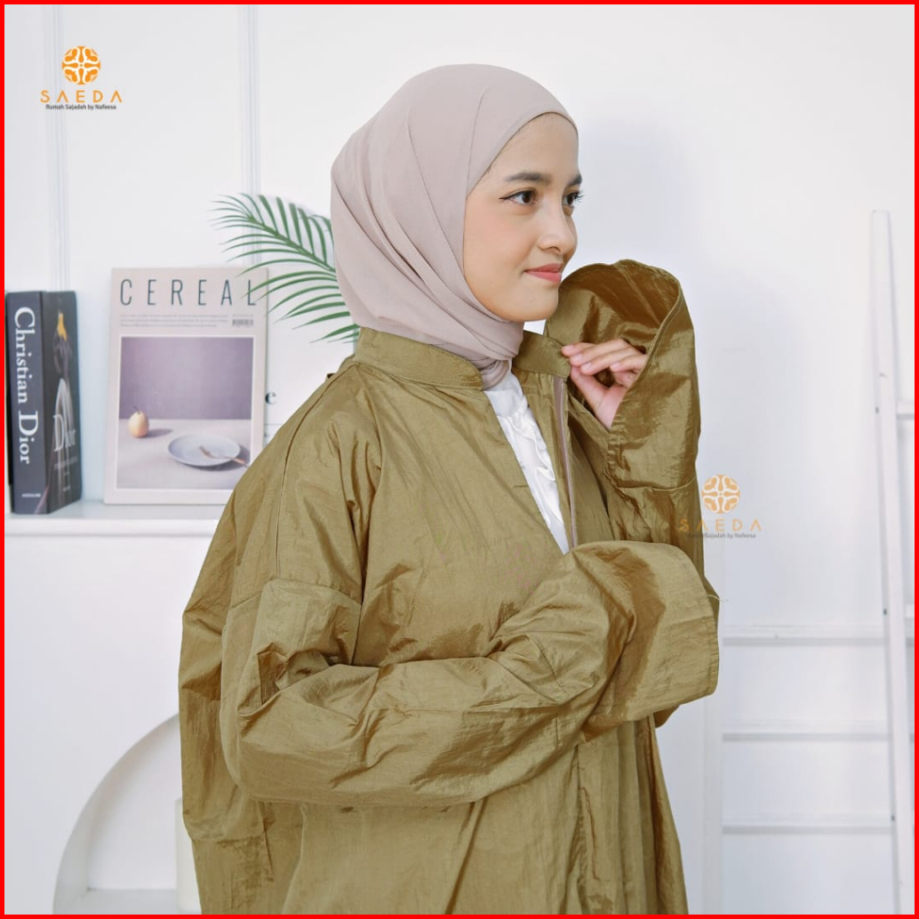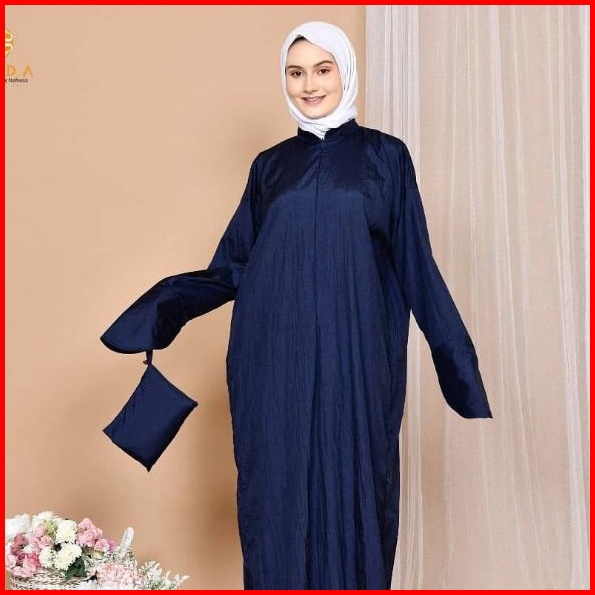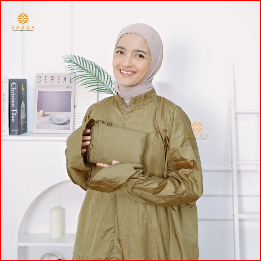 Saeda- Mukena Travel Terusan Abaya Polos Parasut Kusut Krinkle Safiyya Mukena Terusan Mini Pouch