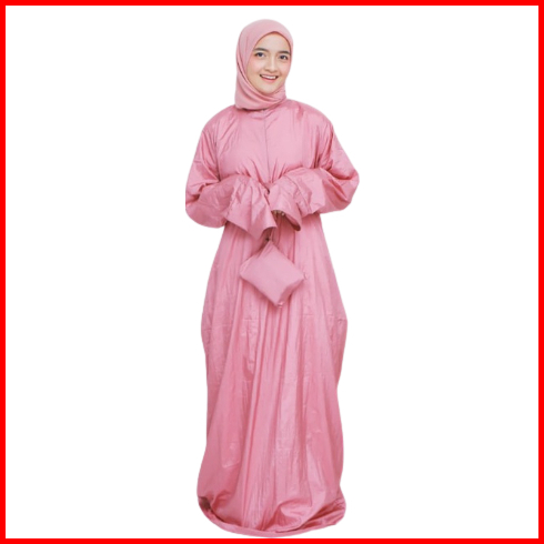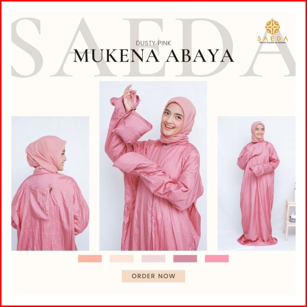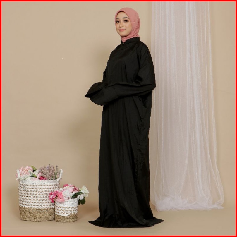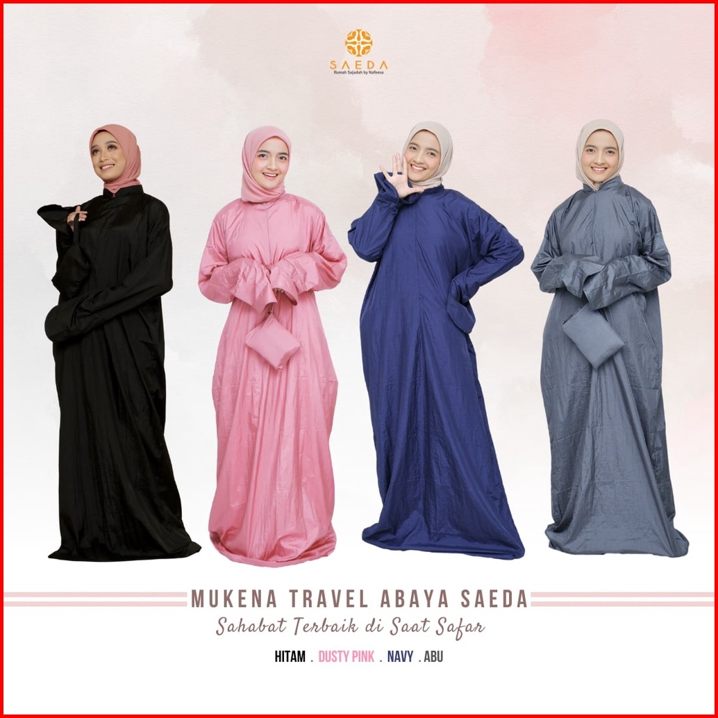 Saeda- Mukena Travel Terusan Abaya Polos Parasut Kusut Krinkle Safiyya Mukena Terusan Mini Pouch