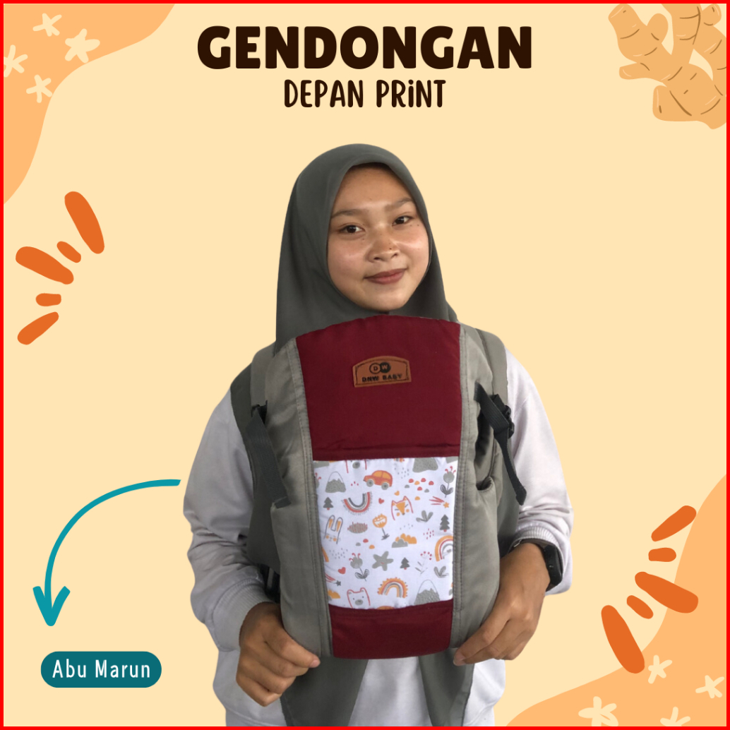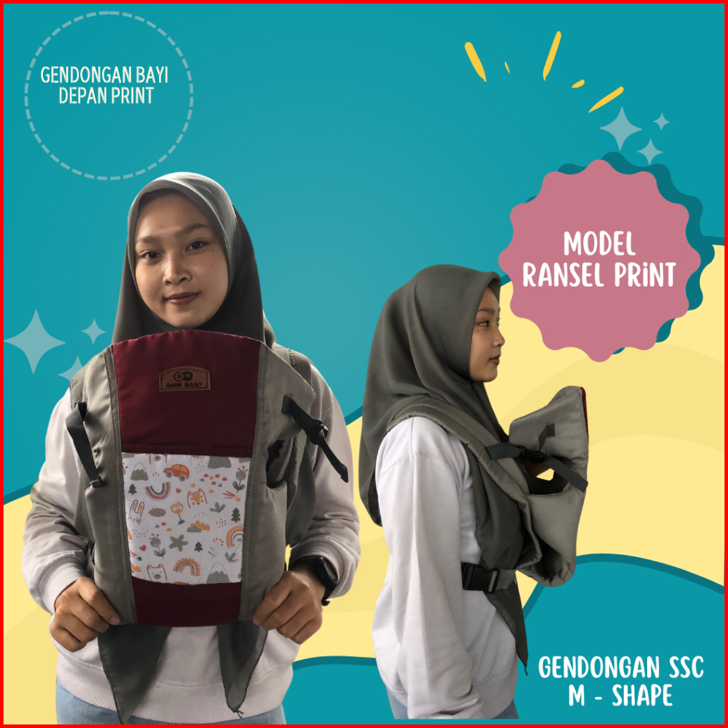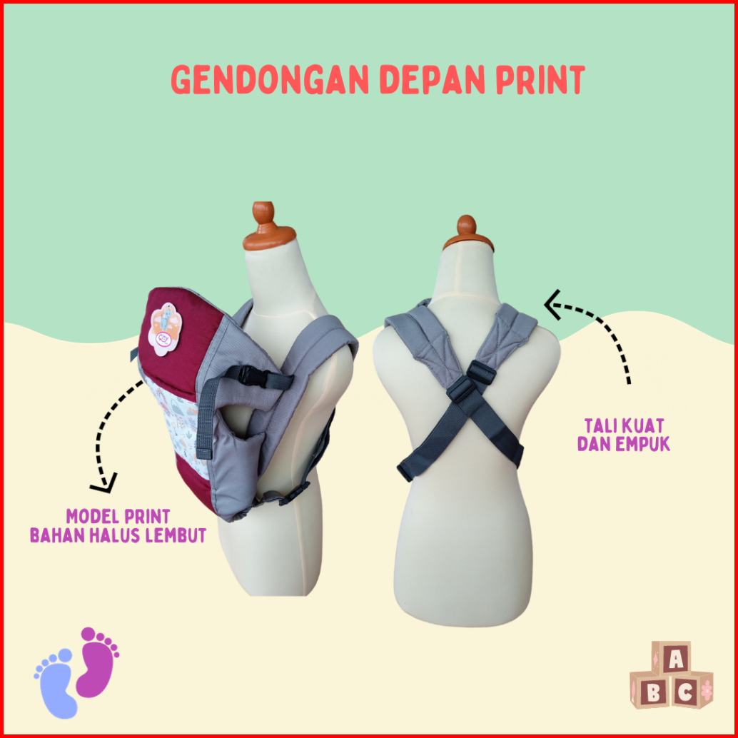 Gendongan Bayi Depan Ransel Hipseat Motif Print