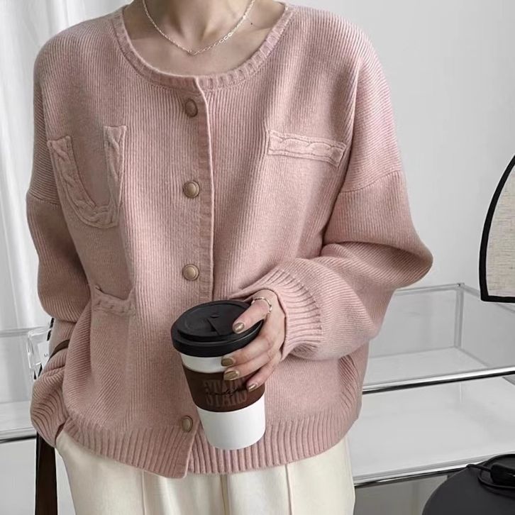 Terlaris Sweter kardigan longgar gaya Korea rajutan jaket sweter kasual retro warna solid untuk wanita Elegan