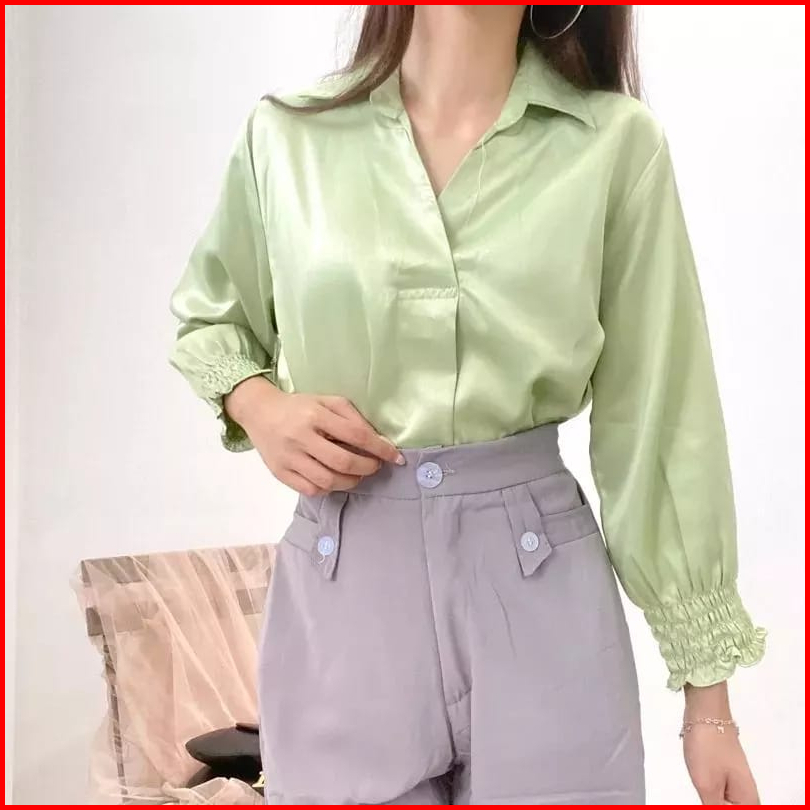 Promo Kemeja Satin Velvet Blouse Keren Wanita Pakaian Wanita Terbaru Blouse Satin Atasan Wanita Kekinian Baju Casual Wan