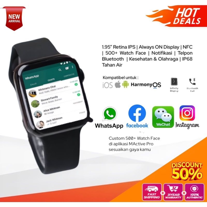 TERMURAH Jam Tangan Android Pintar Layar Sentuh Anti Air Smartwatch Pria Wanita Unisex Keren Elegan Mewah