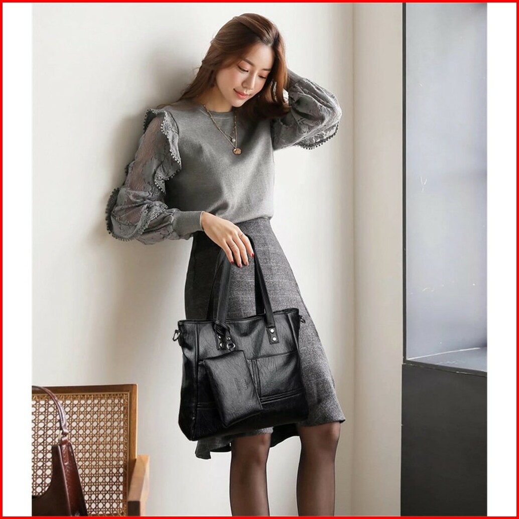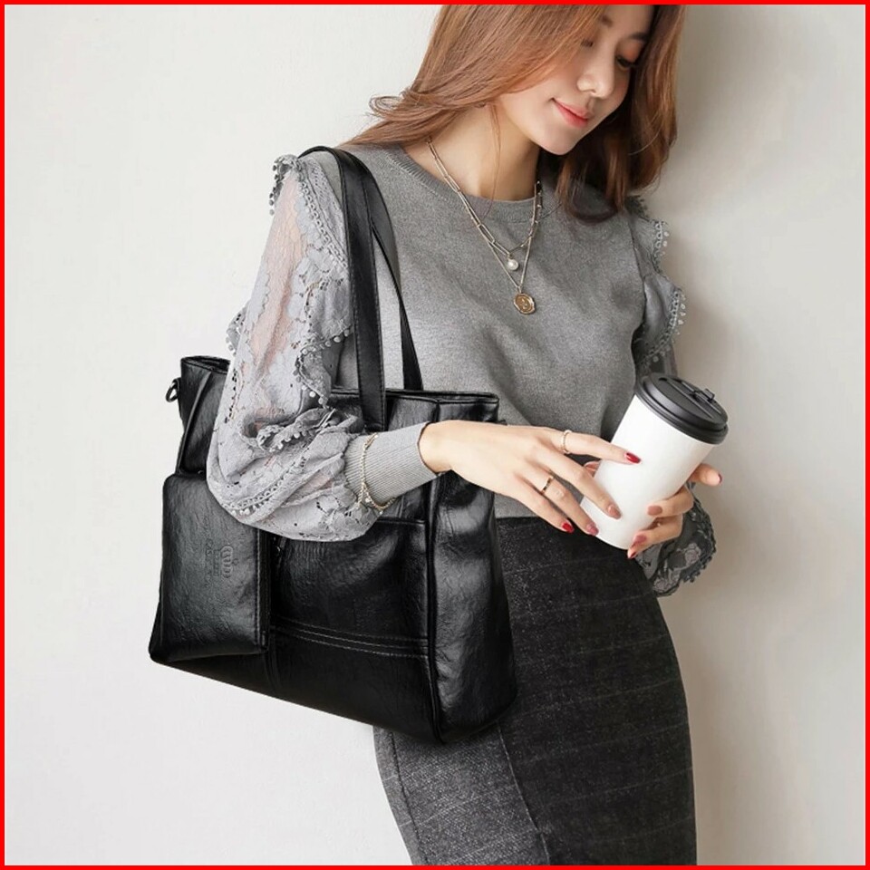 Rifich - Tas Totebag Wanita Bisa Selempang Ada Resleting Kapasitas Besar Tas Wanita Terbaru Kulit Sintetis Premium Kekin