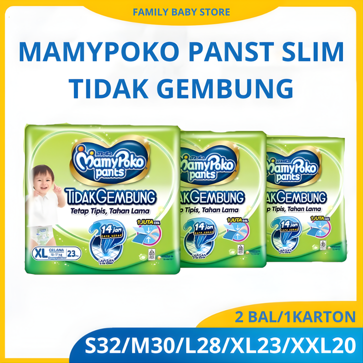 PAMPERS MAMYPOKO SLIM 1 KARTON DUS UKURAN M 30 L28 XL 23 POPOK BAYI BARU LAHIR PEMPES ANAK CELANA NEWBORN MAMY POKO