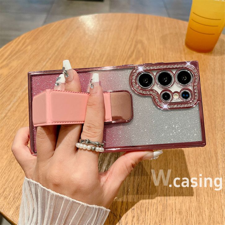 Electroplated Gradient Flash Silicone Foldable Phone Stand Protection Case for Samsung Galaxy S24 S23 S22 Ultra Plus A15