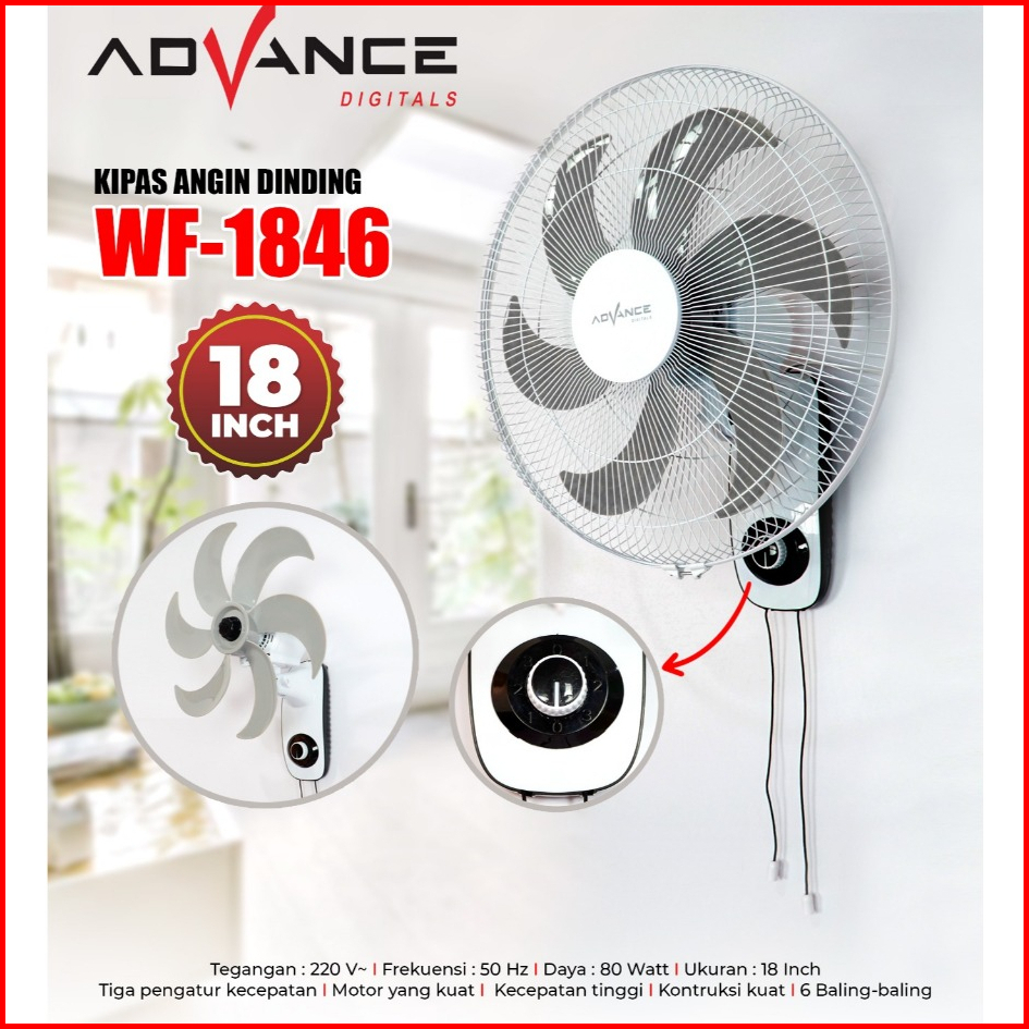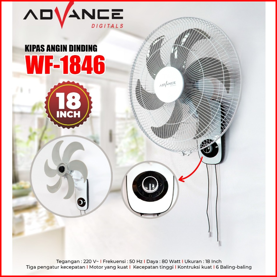 Advance Wf1846 Kipas Angin Dinding Besi 80 Watt 18 Inch Garansi Resmi 1 Tahun