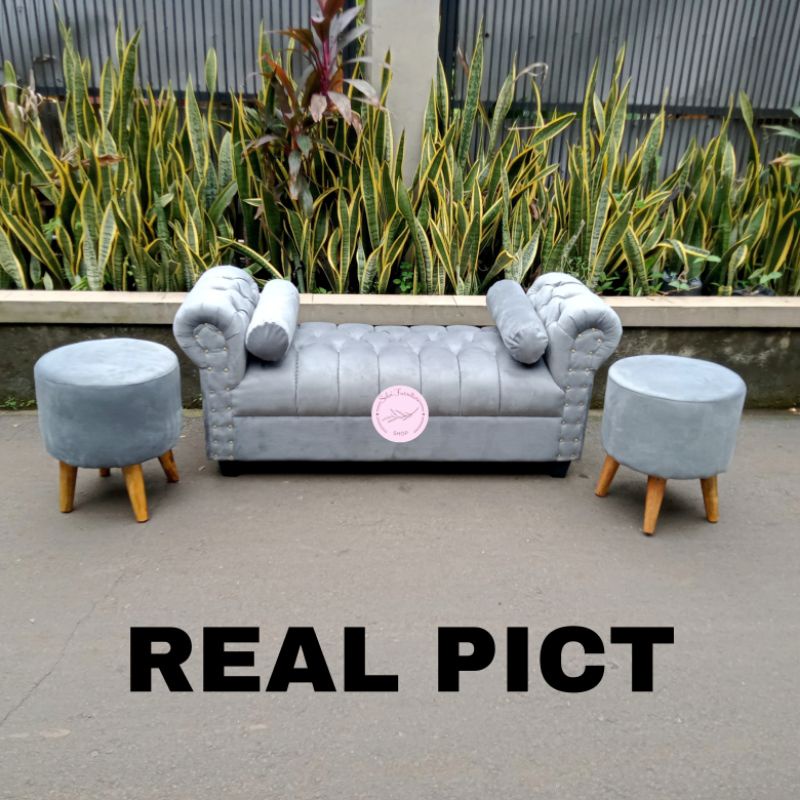 KURSI SOFA BENCH + 2 STOOL [FLASH SALE]KURSI RUANG TAMU MINIMALIS SANTAI BOX STORAGE SOPA BENCH