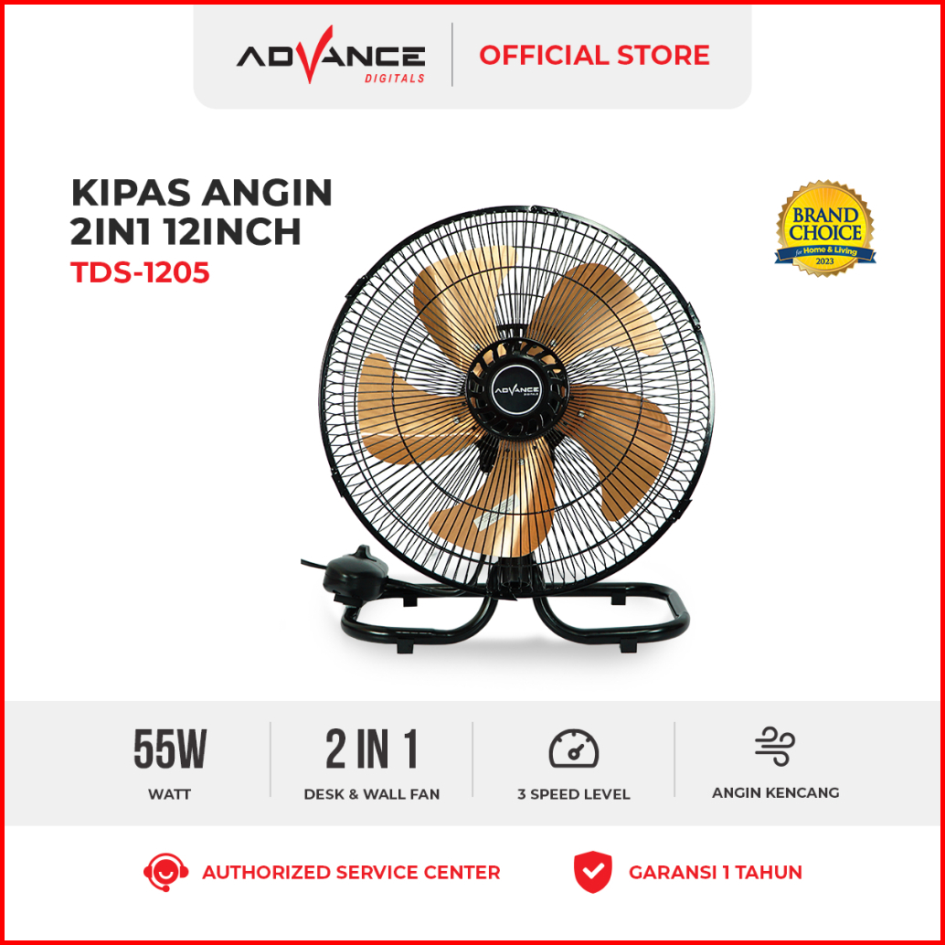 Advance Tds-1205 Kipas Angin Meja Dan Dinding 2in1 12 Inch Kipas Angin Besi Garansi Resmi 1 Tahun
