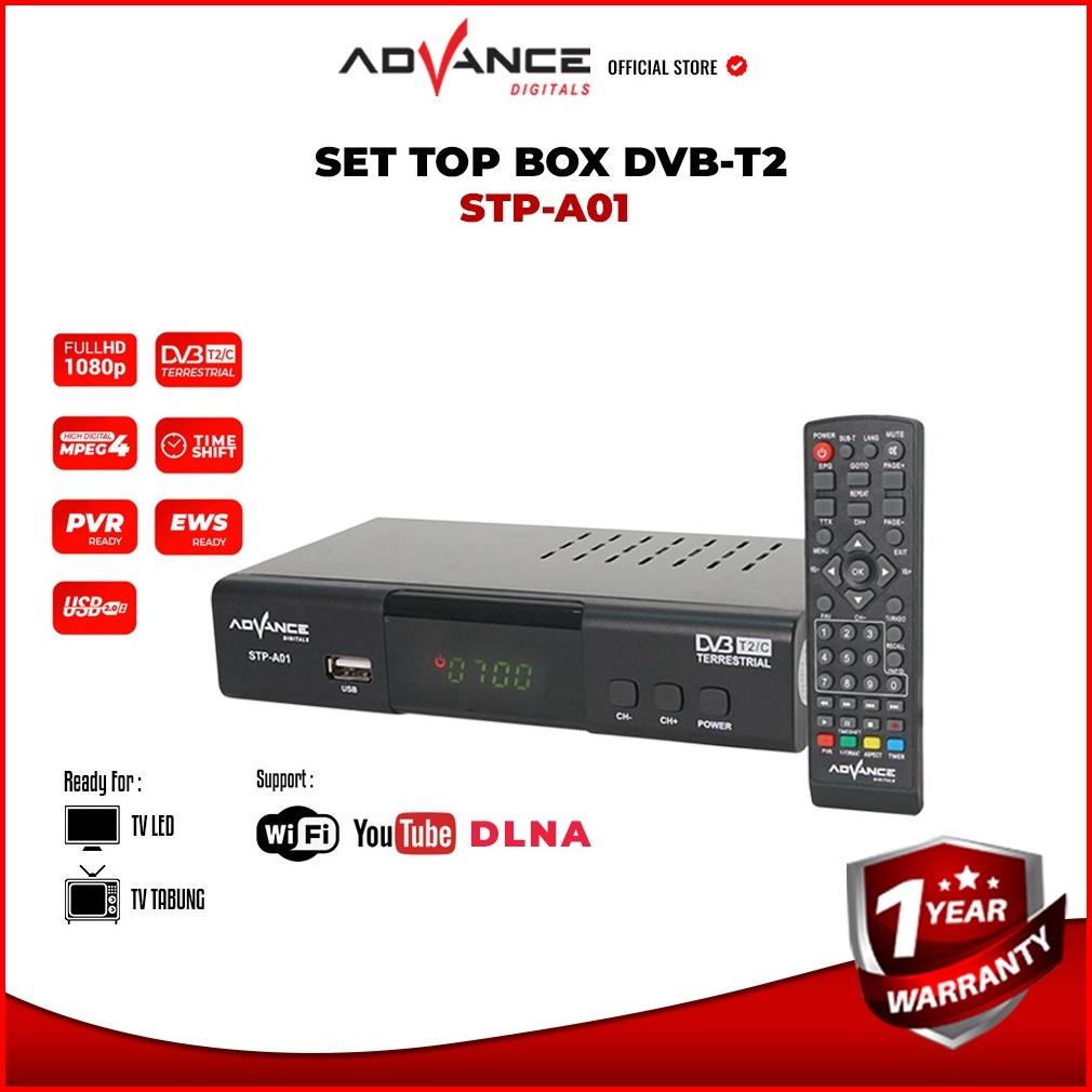 Advance Set Top Box Tv Digital Receiver Penerima Siaran Full Hd Stb Wifi Youtube Dvb-t2 Stp A01 Banyak Channel