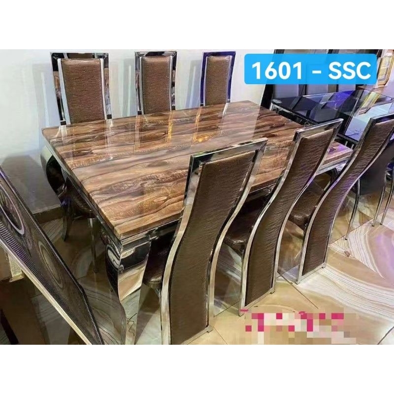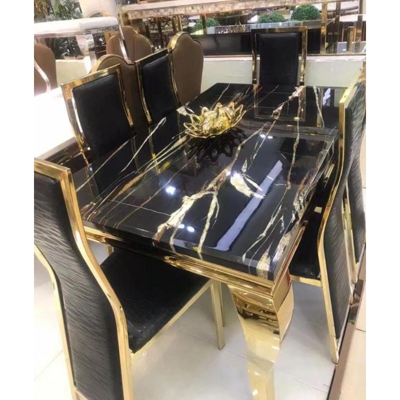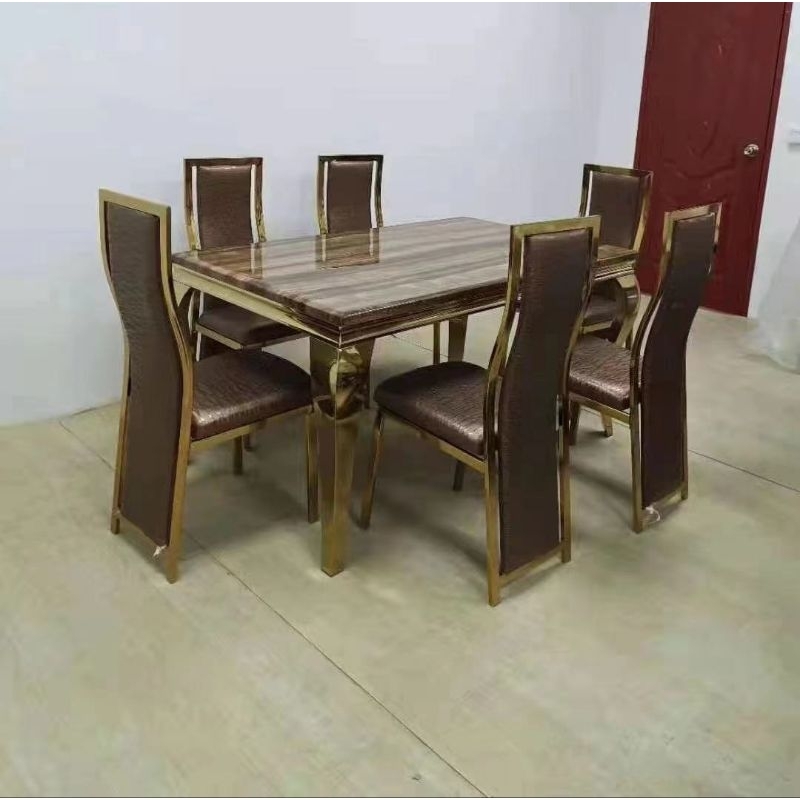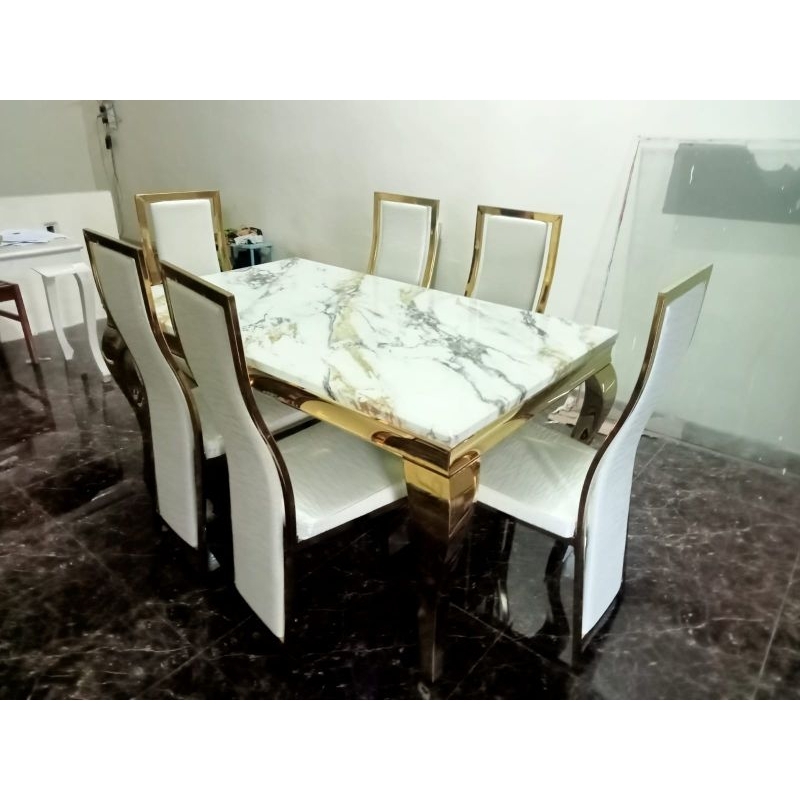 [FLASH SALE]MEJA MAKAN MARMER IMPORT LUXURY + 6 KURSI SET KAKI BESI