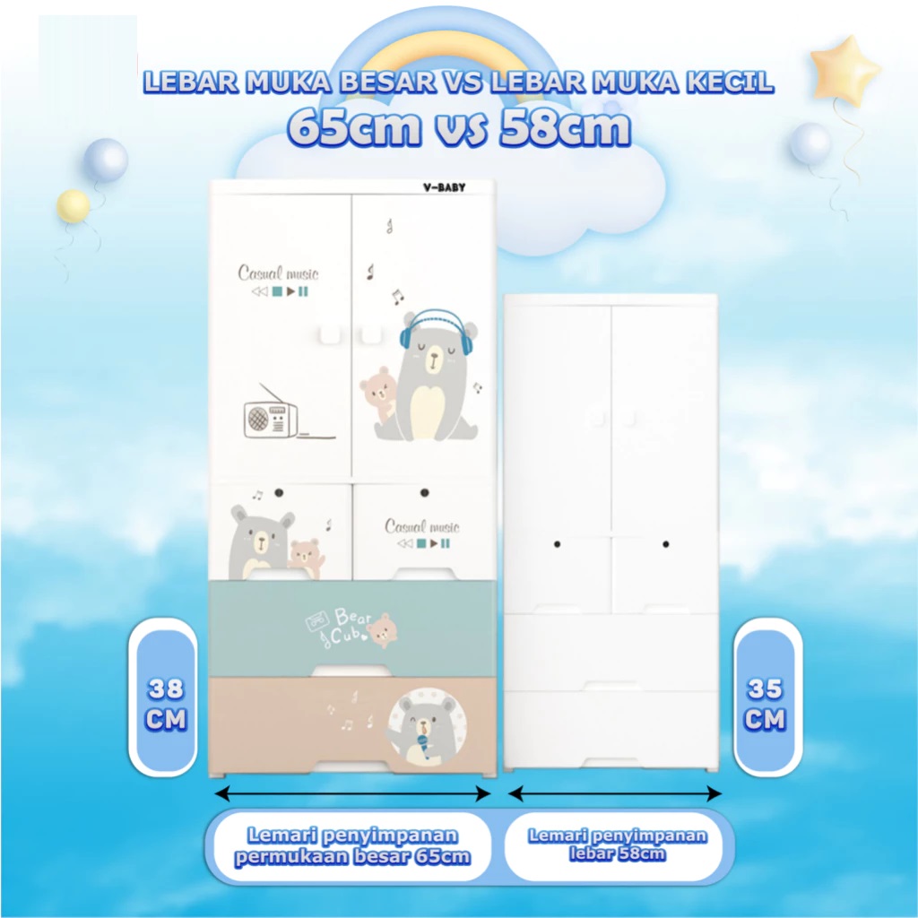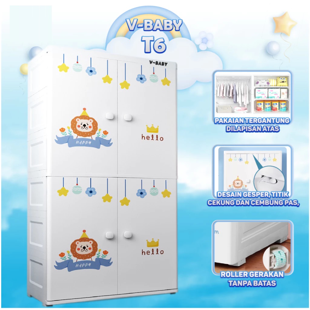 V-BABY CARE - Lemari Pakaian Anak 65CM / Lemari bayi Plastik / Plastic Storage Cabinet Lemari /Laci Plastik VBABY-T6