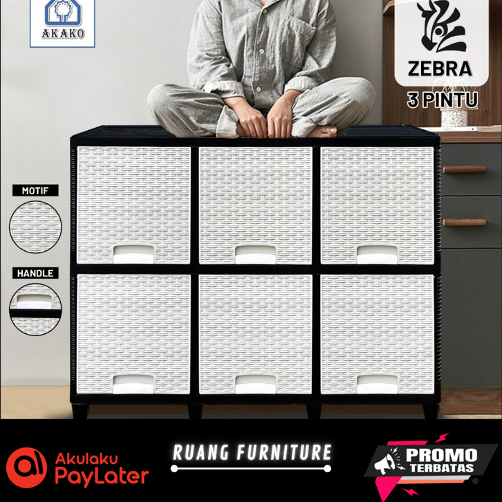 Lemari Pakaian Plastik Akako Zebra 3 Pintu 2 3 Susun Laci 6 9 Pintu Putih Rotan Murah Kuat Kokoh