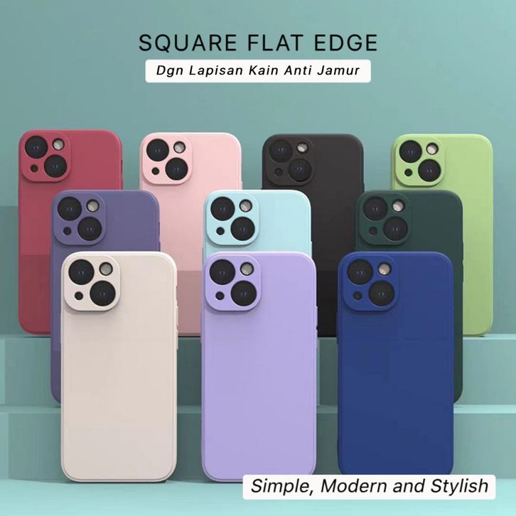 [SALE] Silicone SQUARE EDGE NO LOGO Soft Case iPhone 12 13 14 15 PRO MAX PLUS Casing Silikon Flat Lapisan Anti Jamur
