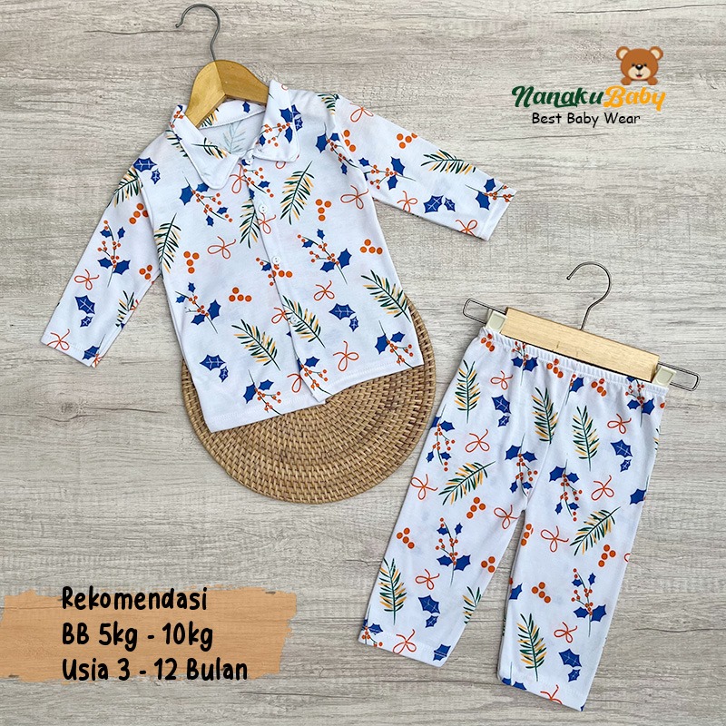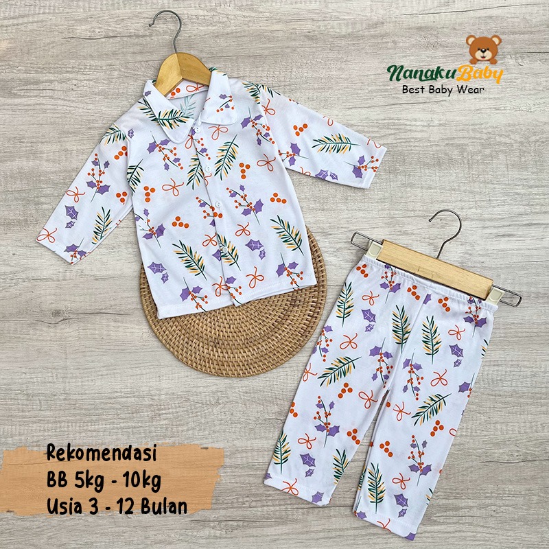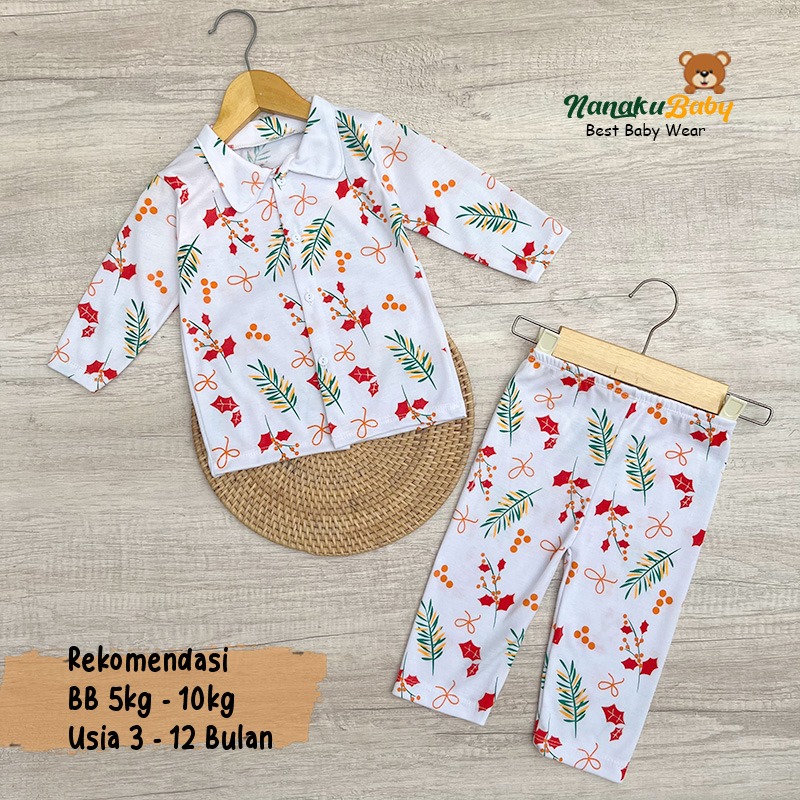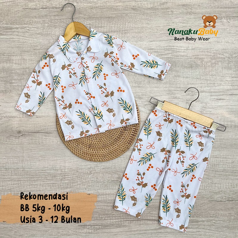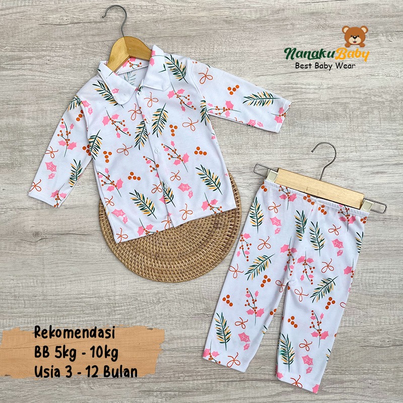 Nanaku Baby - Setelan Bayi Perempuan Kancing Depan Usia 3-12 Bulan Motif Leaves and Ribbons