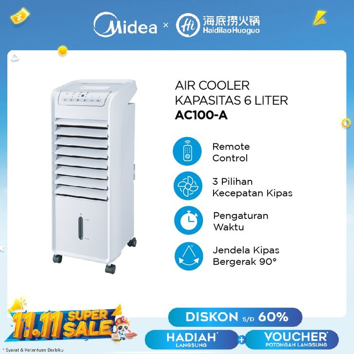 [Mall] MIDEA Air Cooler Dingin Terbaik Portable Pendingin Ruangan Low Watt 4.8 / 6.0 Liter AC100-18B Sharp Gree Tanpa DP