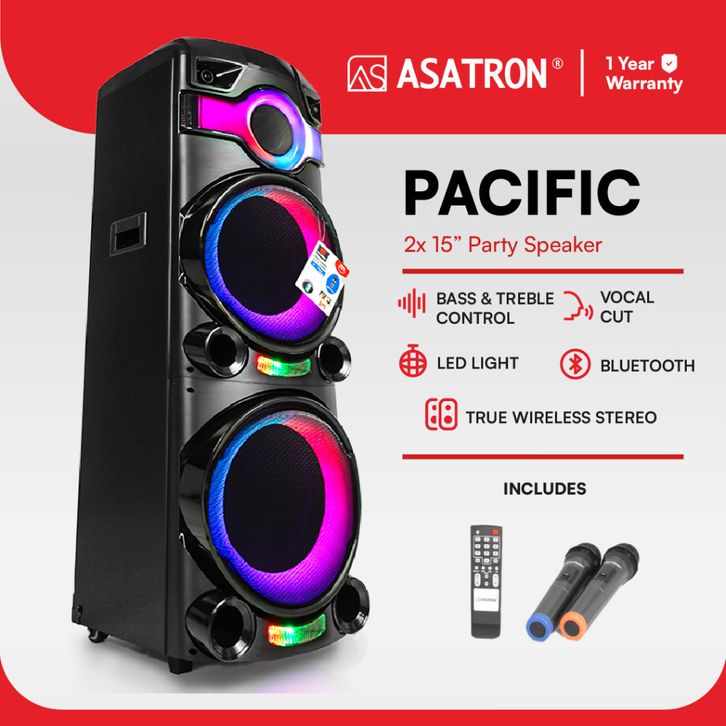 Asatron Pacific Dual 15 Inch Bluetooth Party Speaker Super Bass Speaker Bluetooth Terlaris Kekinian