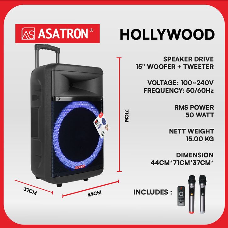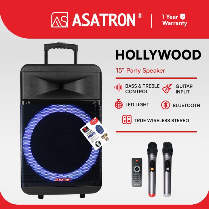 Asatron Hollywood 15 Inch Bluetooth Party Speaker Bluetooth Speaker Bass Speaker Karaoke