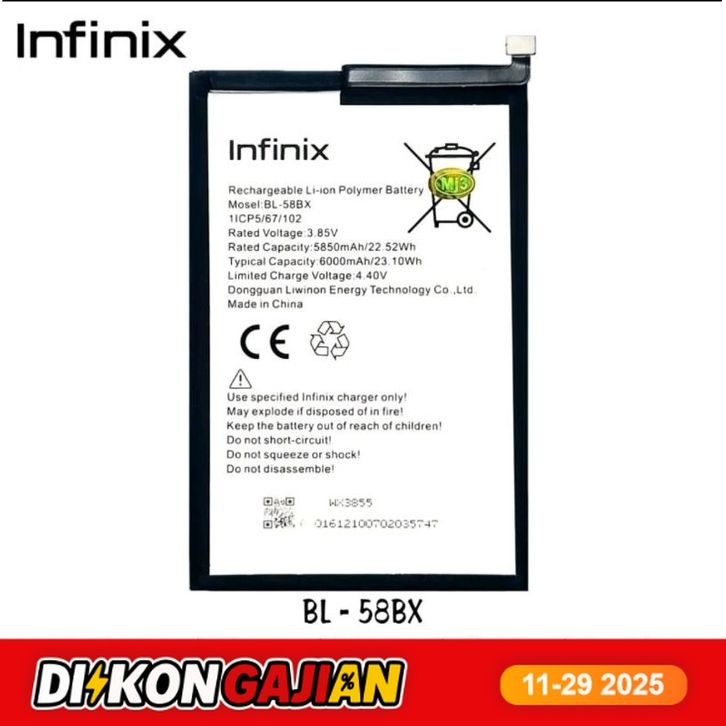 BATERAI BATRE INFINIX HOT 9 PLAY X680/ HOT 10 11 PLAY X688B X688C HOT 12 PLAY X6816 HOT 10S BL58BX BATTERY ORIGINAL