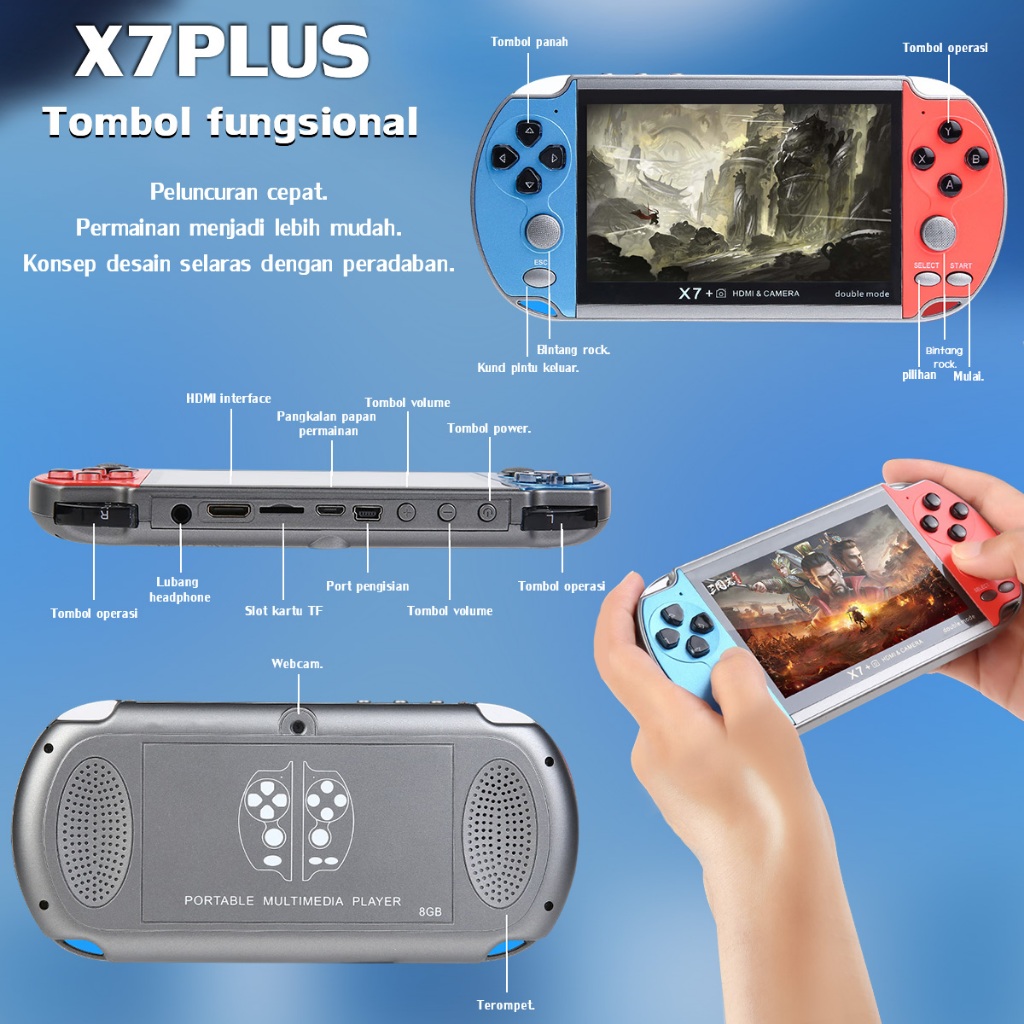 [FLASH SALE] PSP X12/X7PLUS/X80 GAMEBOY RETRO VIDEO GAME CONSOLE 8GB BAWAAN 20.000+ GAME 5,1 INCI HANDHELD GAME CONSOLE