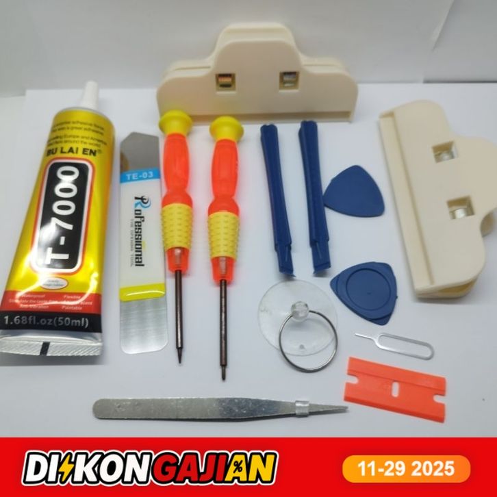 ( SEPAKET ) Obeng set Hp 8 IN 1 / 10 in 1 + Penekan LCD LEBAR + LEM b7000 15 BENING / B7000 50 ML / T7000 15ml