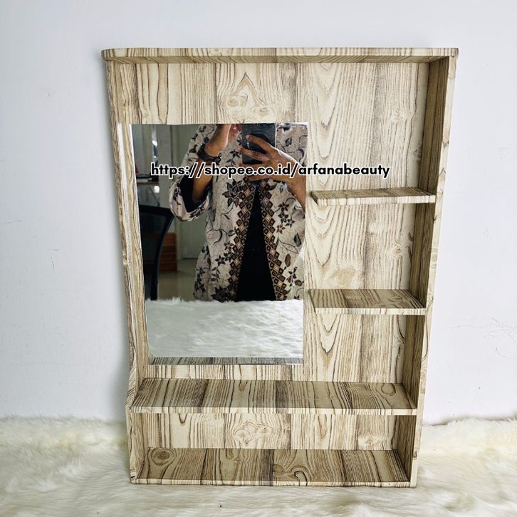 Rak Kosmetik Rak Kosmetik Plus Kaca Rias Makeup Aesthetic Gantung Dinding Tempat Untuk Rias Make Up Skincare Kosmetik C