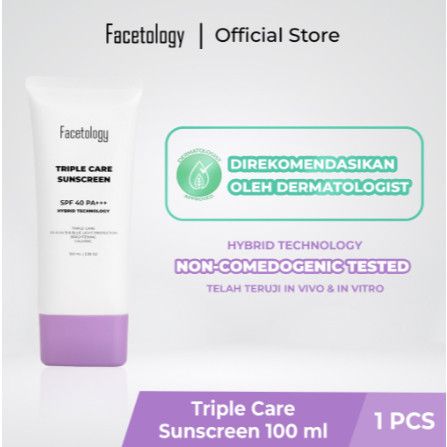 BPOM Facetology NON COMEDOGENIC SUNSCREEN TESTED BIG SIZE Triple Care Sunscreen SPF 40 PA+ 100ml