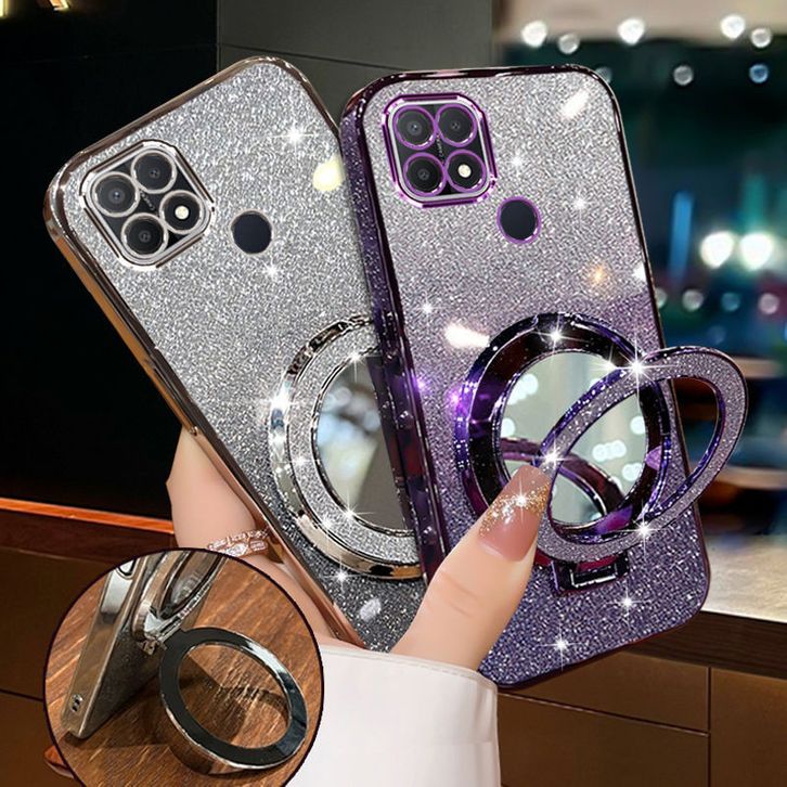 Softcase Realme C15 For Realme C25Y C21Y C21 C20 C17 C15 C11 2021 C11 case casing with Makeup Mirror Holder Stand Luxur