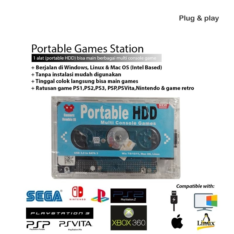 [FLASH SALE] PORTABLE HDD GAMES MULTI CONSOLE, SATU ALAT BISA MAIN GAME TERKINI & GAMES JADUL (GRATIS STIK 2PCS)