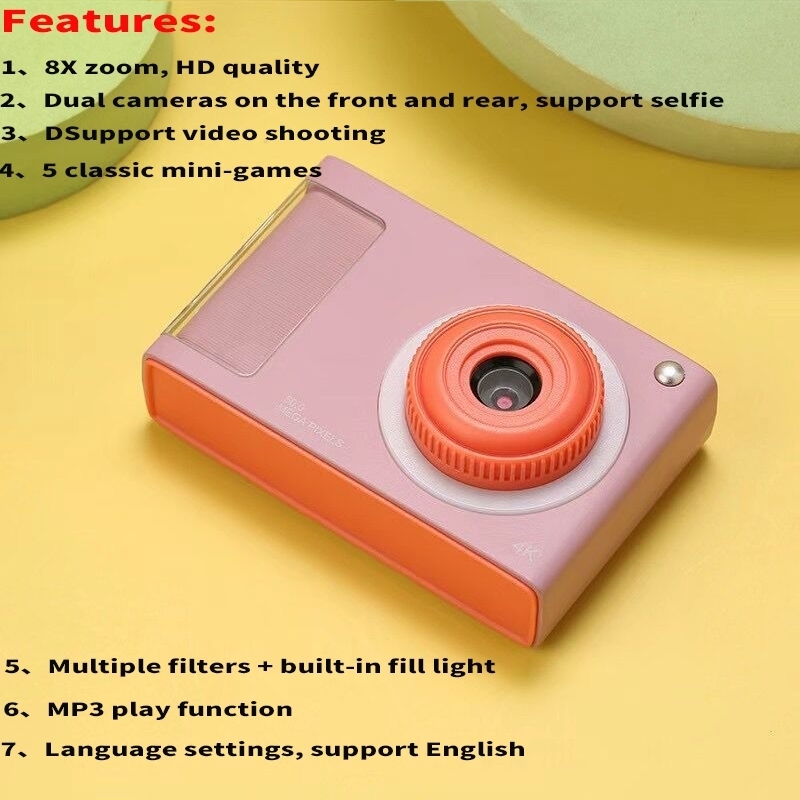 KAMERA DIGITAL KECIL YANG LUCU 2.7K LAYAR IPS 8X ZOOM DETEKSI WAJAH KAMERA MINI VLOGGING